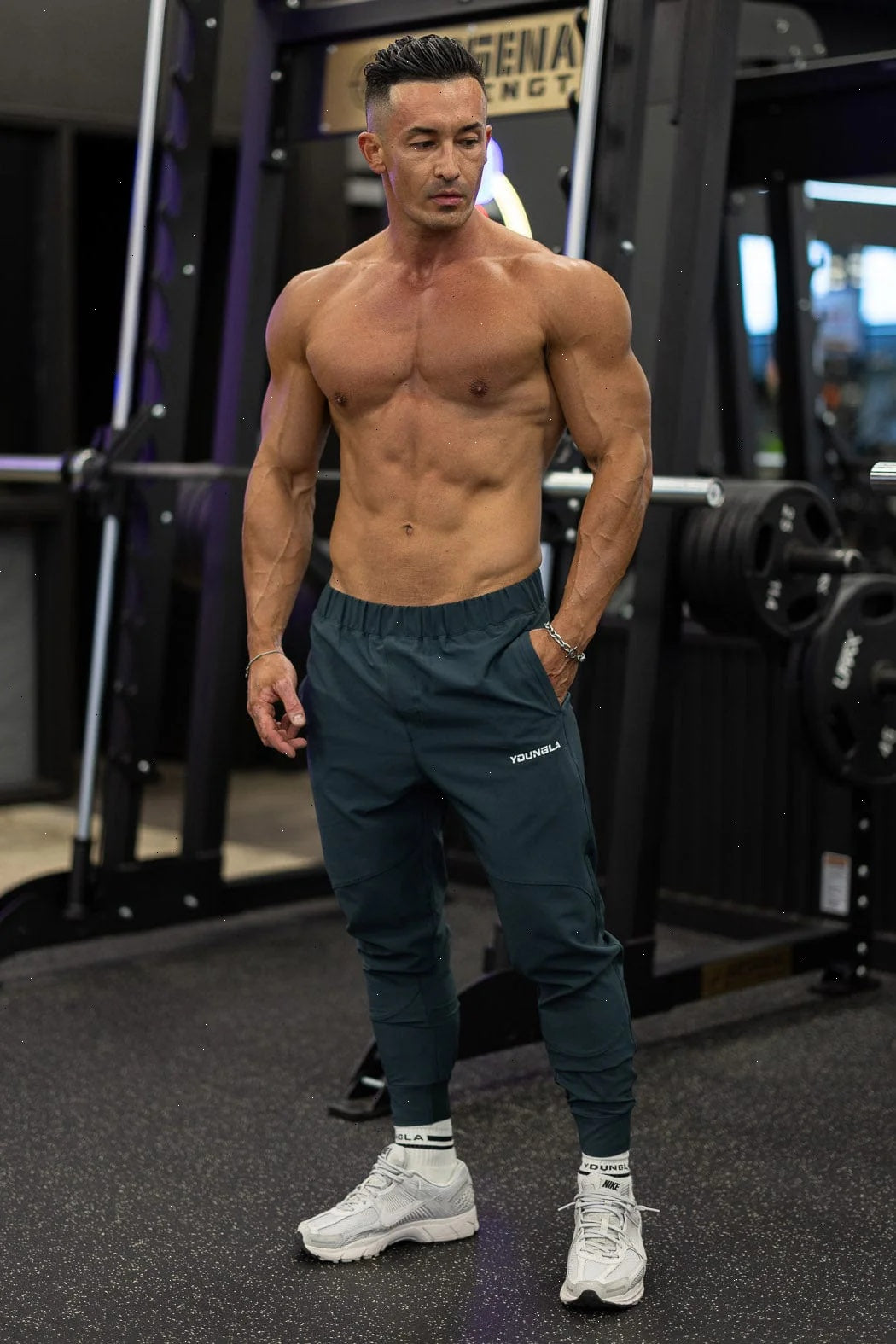 DESIGN: These ultra training joggers are designed for performance, offering a lightweight, flexible fit. Featuring the "YOUNGLA" logo on the thigh, they are durable, perfect for intense workouts or casual wear. The elastic waistband and cuffed ankles provide a secure, comfortable fit.