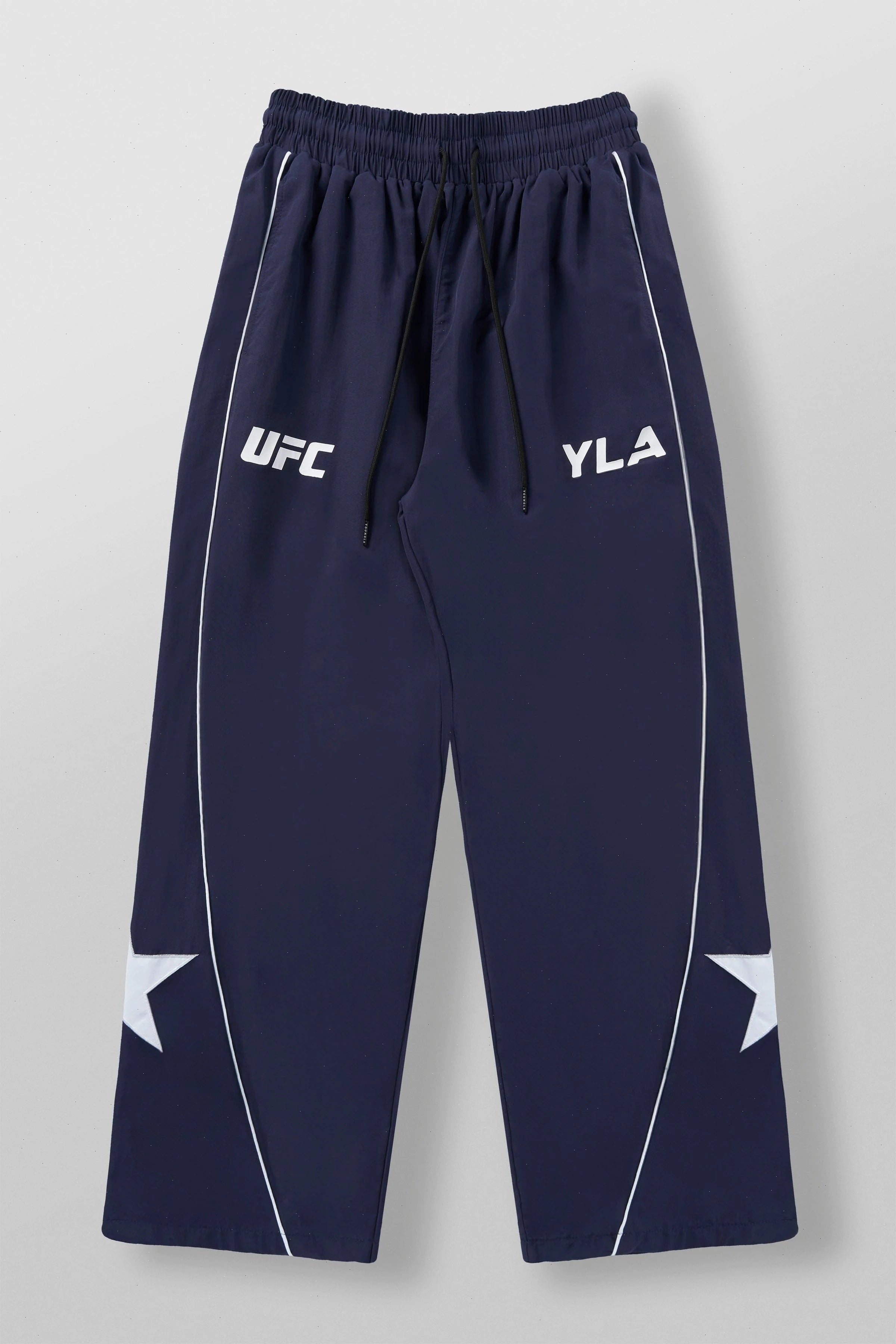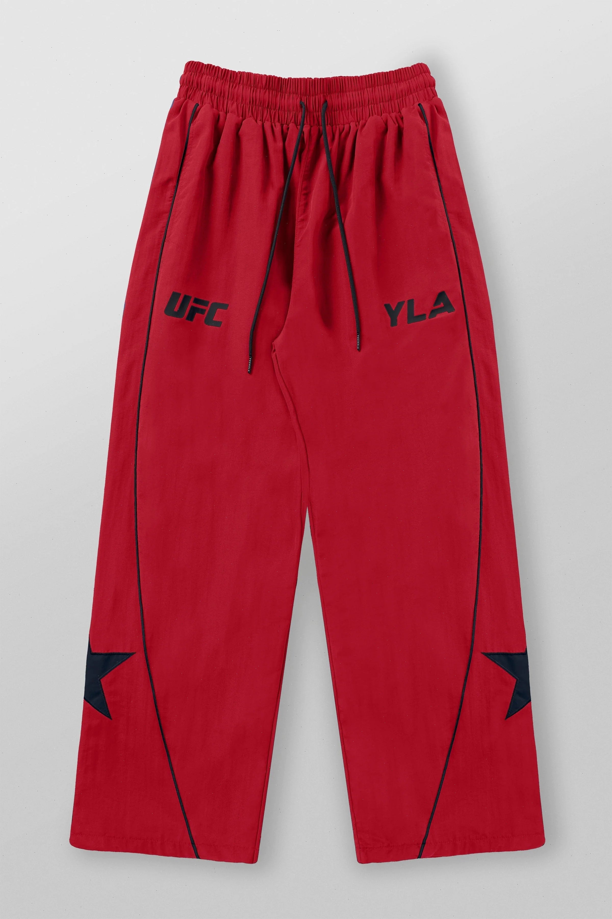 DESIGN: Complete your look with the YoungLA x UFC pants, designed for both performance and style. Crafted from lightweight polyamide, these pants offer comfort and durability, perfect for everyday wear or training sessions. The piping detail down the sides, paired with a bold star patch on the leg, gives these pants a standout look. With an athletic fit and the UFC branding, you'll feel like a champion in and out of the octagon.