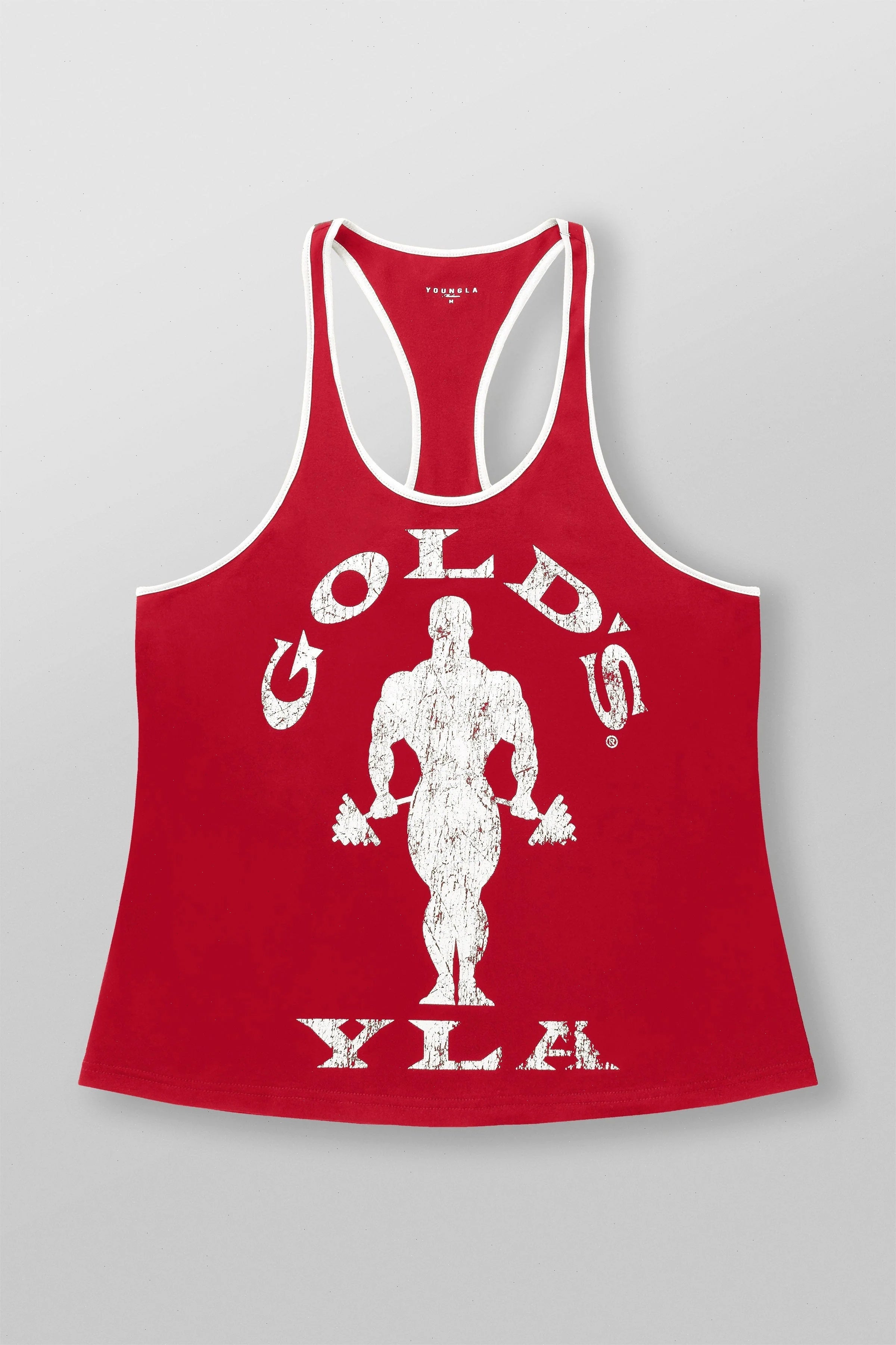 DESIGN: Presenting the YoungLA x Gold's Gym collaboration stringers – a classic piece with contrast piping that adds a timeless touch. Featuring a distressed-effect graphic on the front, these stringers honor Gold’s Gym’s legacy while showcasing YoungLA’s signature style. The fit is crafted from YoungLA's "perfect stringers" design, offering a comfortable and flattering look for any workout session.