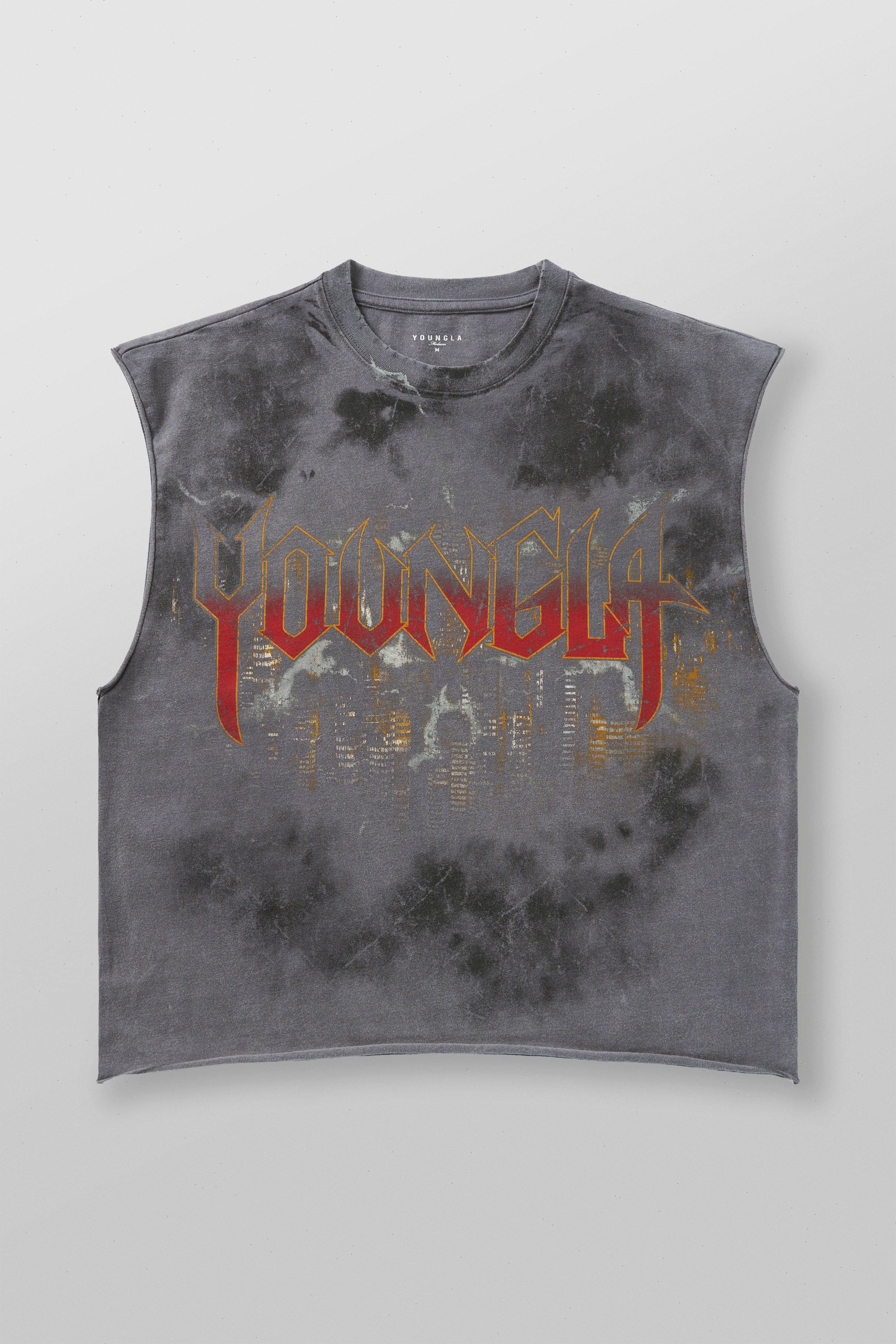 DESIGN: Step up your style with the Dark Night Tanks, combining a streetwear vibe with a luxurious touch. The garment is washed for a vintage color, complemented by a dark skyline art print on the front. Perfect for making a statement with a high-end edge in your everyday look.