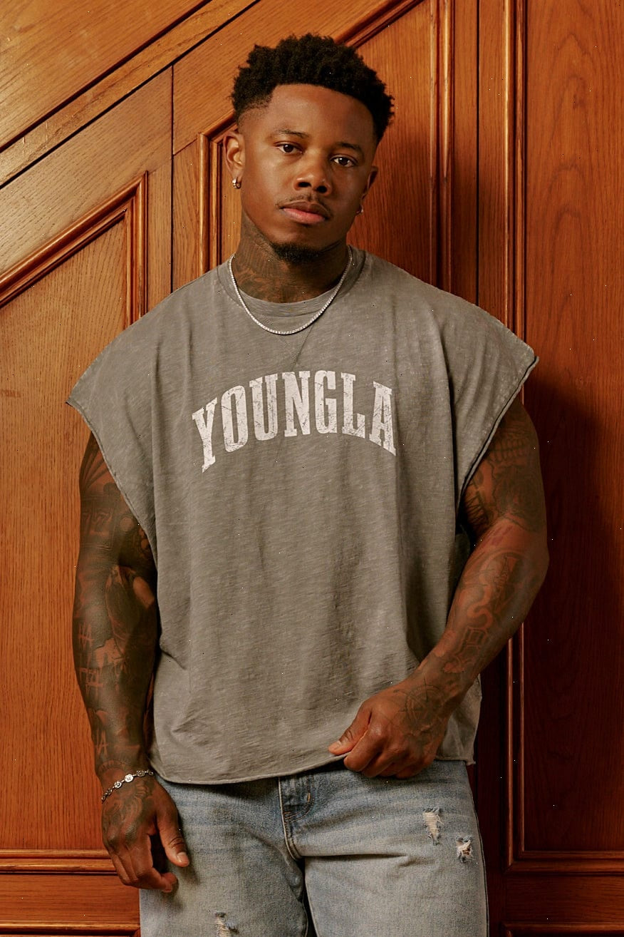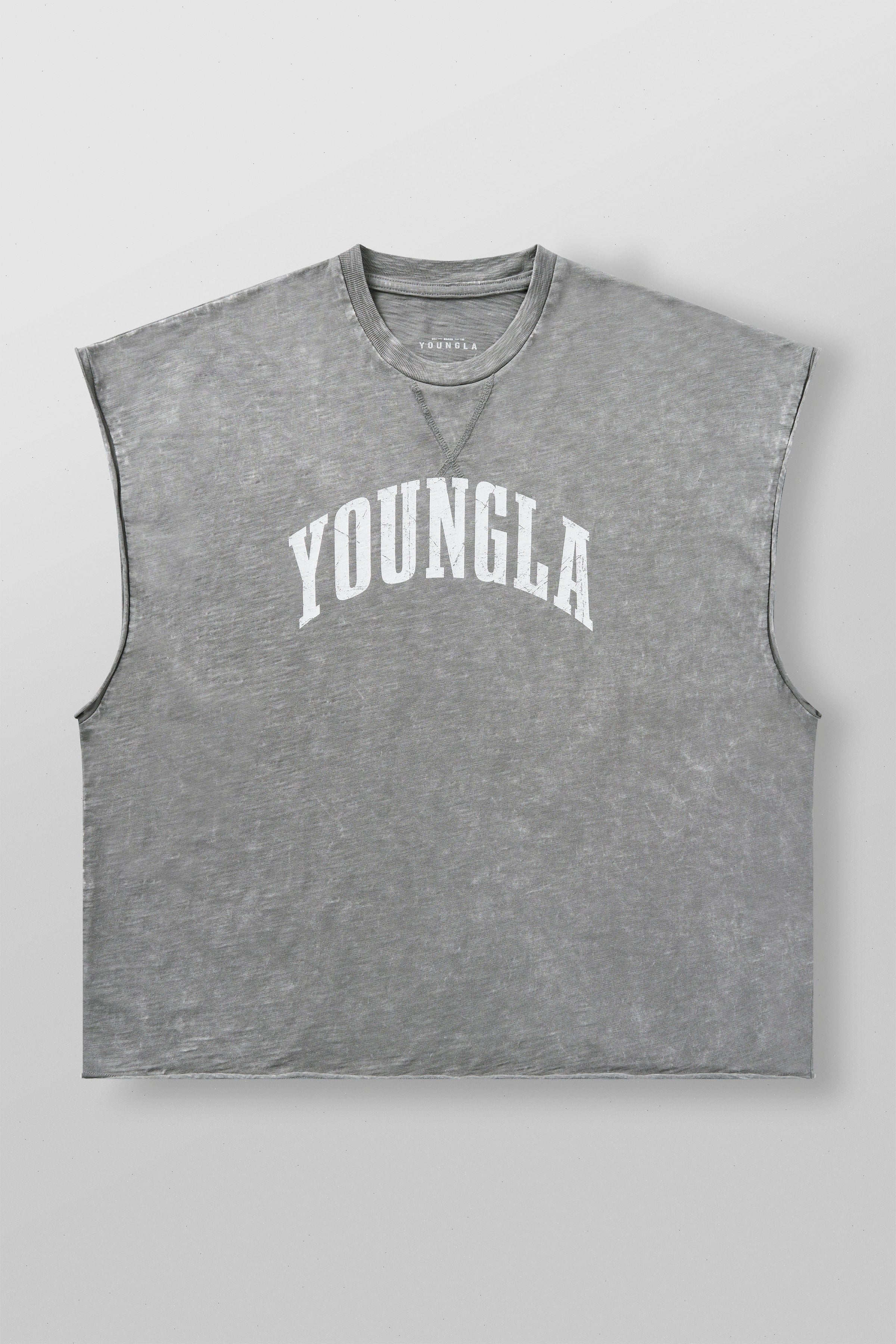 DESIGN: The Huge Cut Offs are built for max comfort and presence. Made from soft 250 GSM cotton, this oversized sleeveless tee delivers a relaxed drape with vintage-wash character. Featuring a bold YoungLA logo printed across the chest, it’s your go-to for heavyweight lifts or laid-back style.
