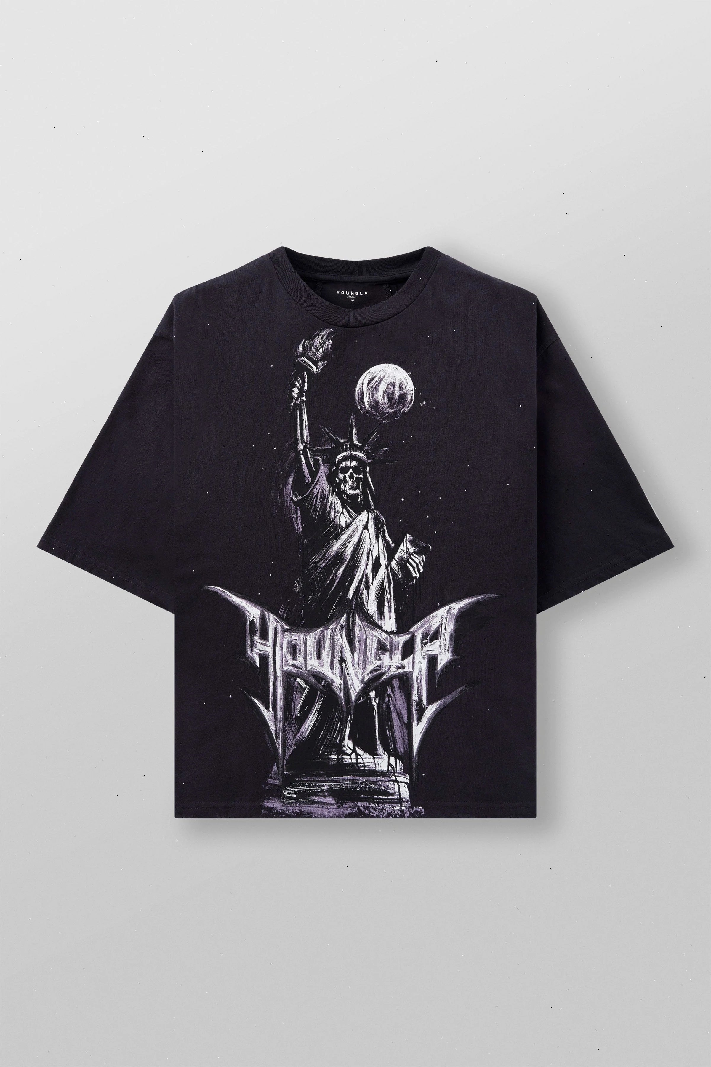 DESIGN: The Liberty Tees combine bold design with premium comfort. Crafted from 100% cotton with a sturdy 290 GSM weight, this shirt features a boxy fit and short length for a relaxed, modern silhouette. A striking graphic dominates the front, making this tee a standout piece in any wardrobe.