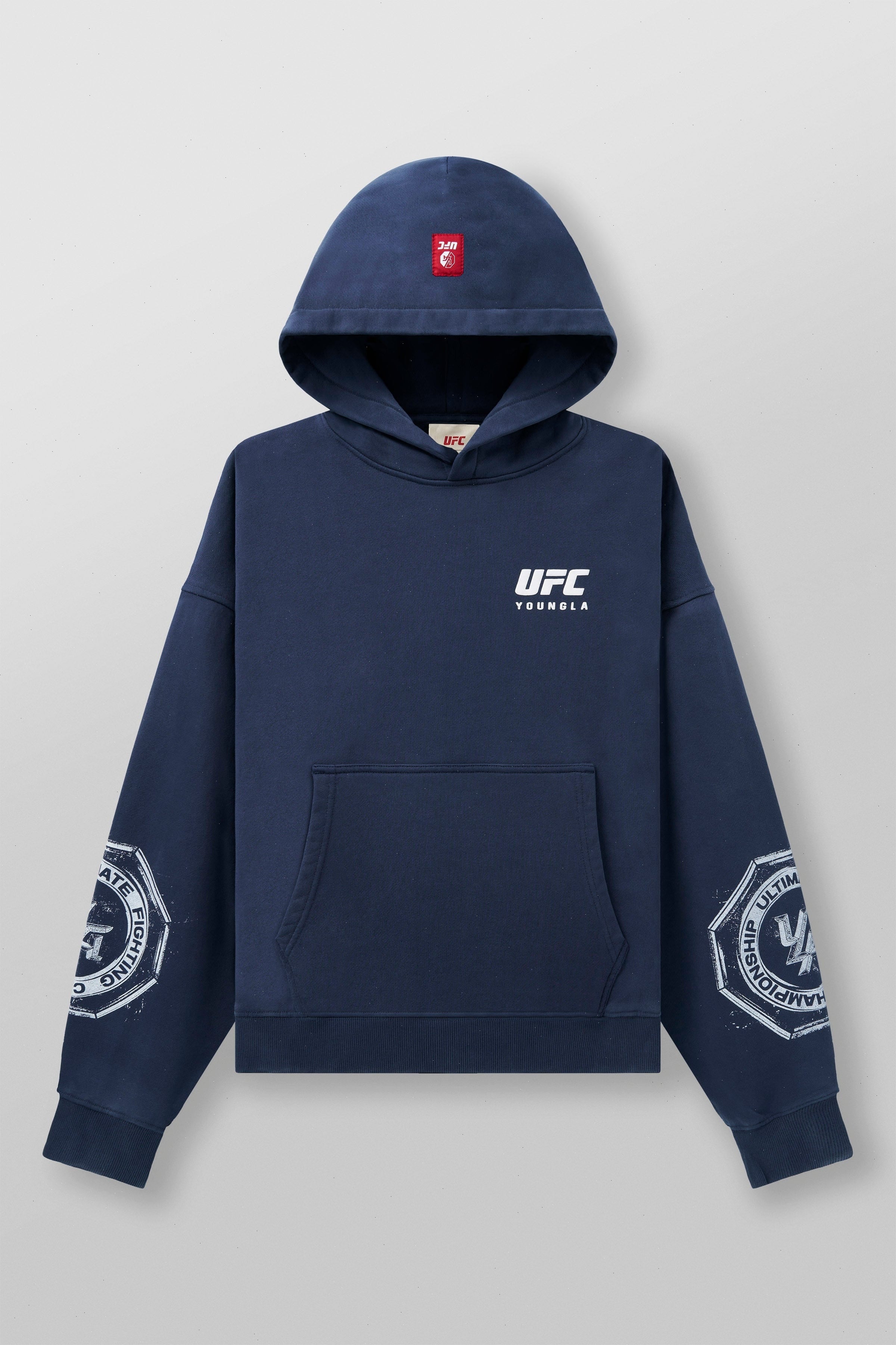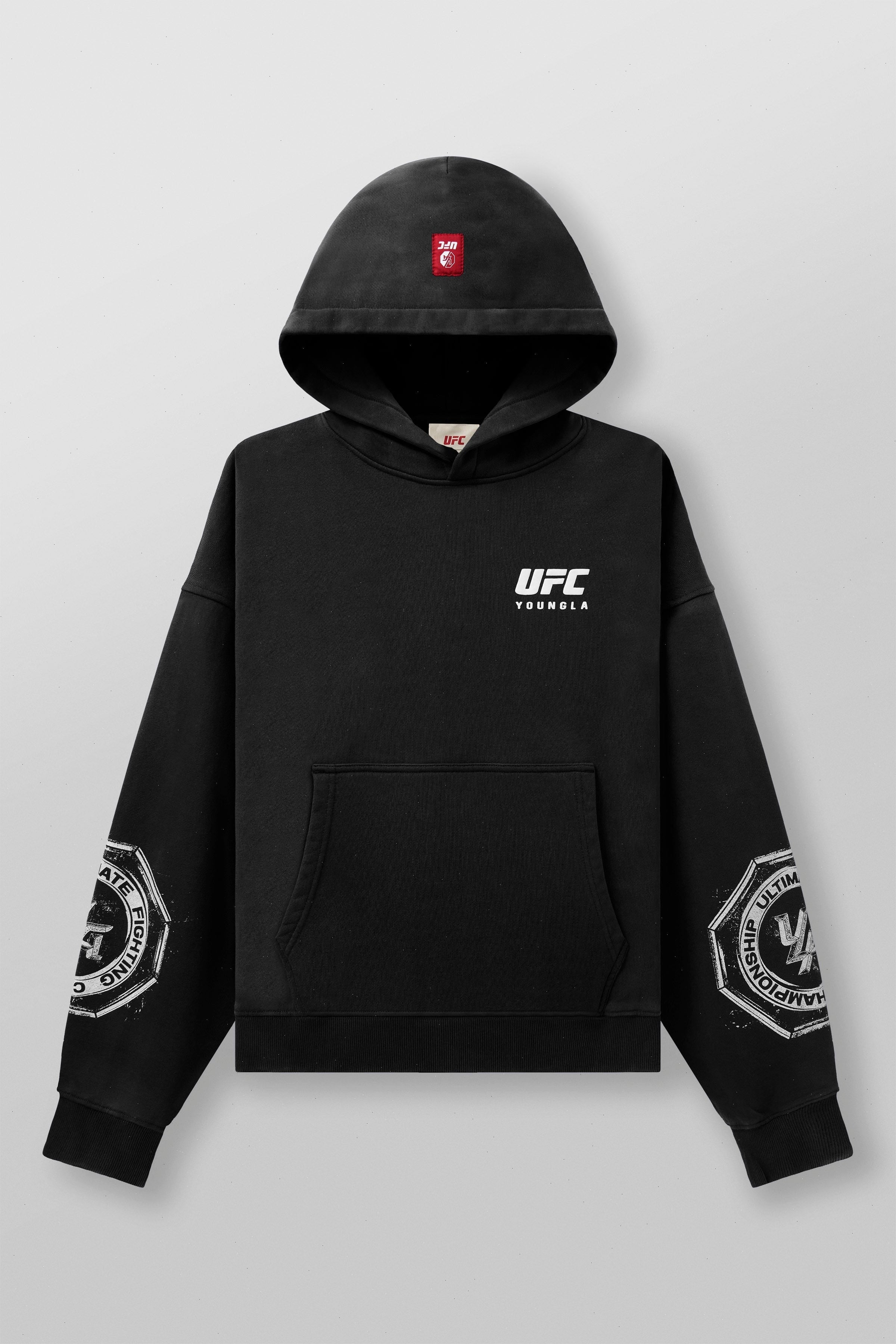 DESIGN: Stay comfortable and laid-back in the YoungLA x UFC oversized hoodie. Made from 100% cotton and garment washed for extra softness, this hoodie offers a relaxed fit that's perfect for everyday wear. With distressed UFC and YoungLA logos on the sleeves, it adds a cool, casual touch to your look. Whether you're hanging out or hitting the gym, this hoodie has you covered.