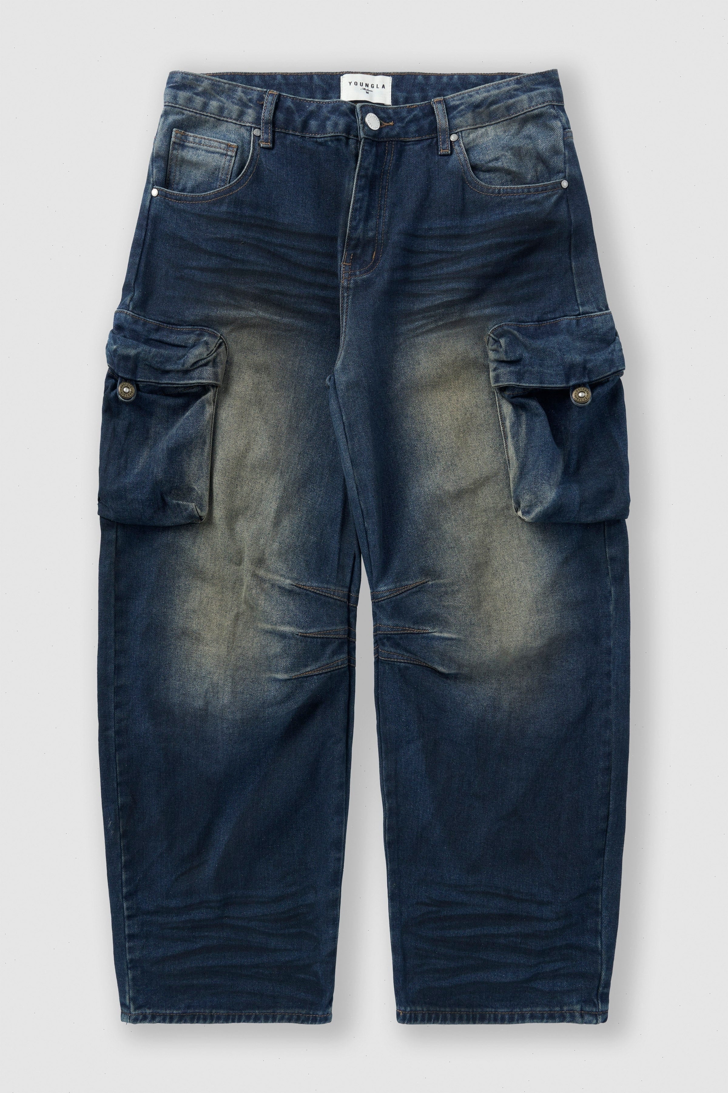 DESIGN: These cargo baggy jeans bring a modern twist to classic denim. Designed with a loose fit and large cargo pockets, they offer both style and practicality. The wash and subtle fading add a lived-in, vintage feel, making these jeans a go-to for effortless street style.