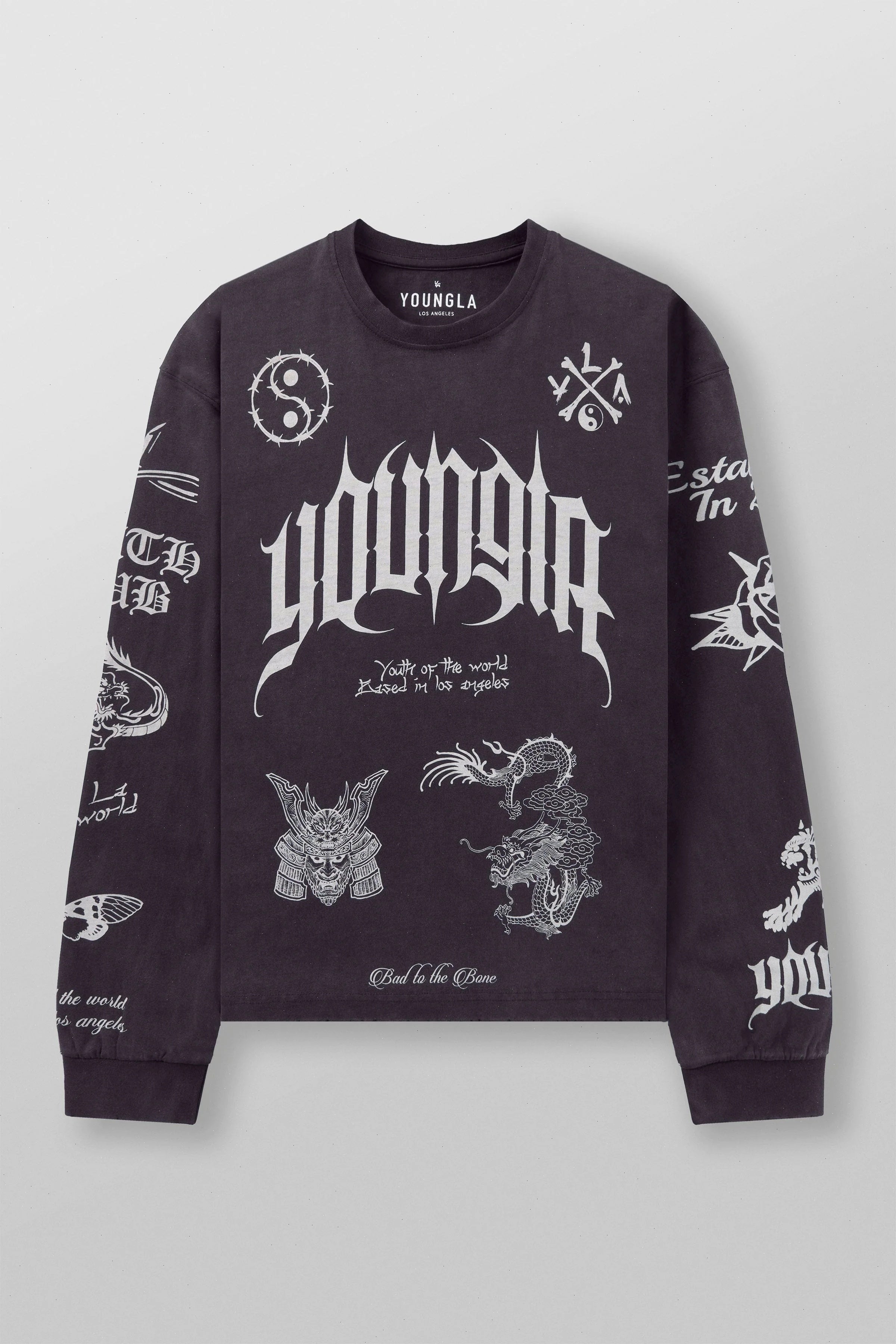DESIGN: Own the look with these rugged, loose-fitting long sleeves. Crafted from durable 270 GSM, 100% cotton fabric, these tees bring serious attitude. The front and sleeves are decked out with aggressive, in-your-face graphics, making this shirt an unapologetic statement piece.