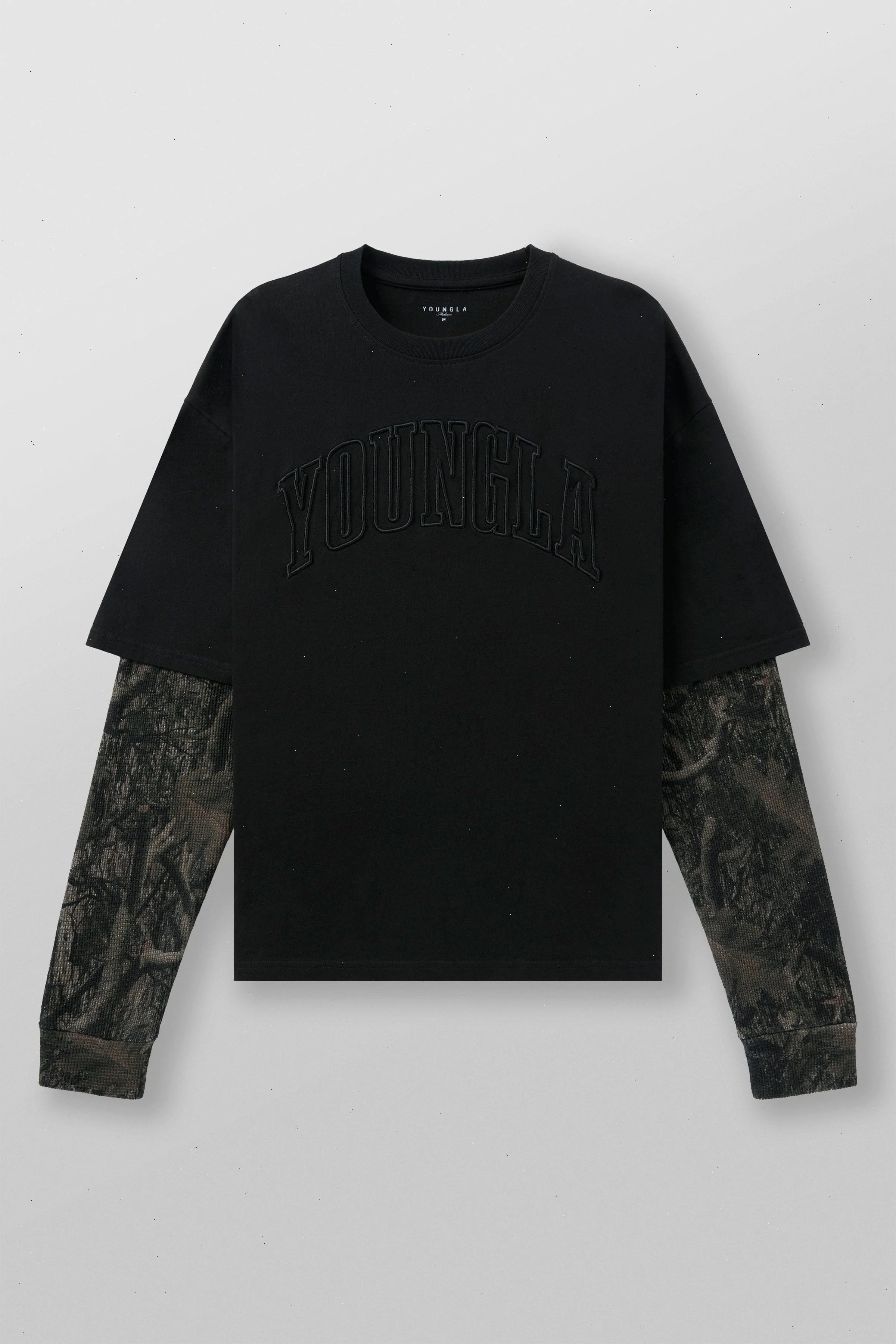 DESIGN: The Tree Camo Twofers feature a soft cotton base with camo-patterned sleeves available in three designs. Cozy and comfortable, these long sleeves are perfect for layering in the fall, combining style and warmth for a laid-back, outdoor-inspired look.