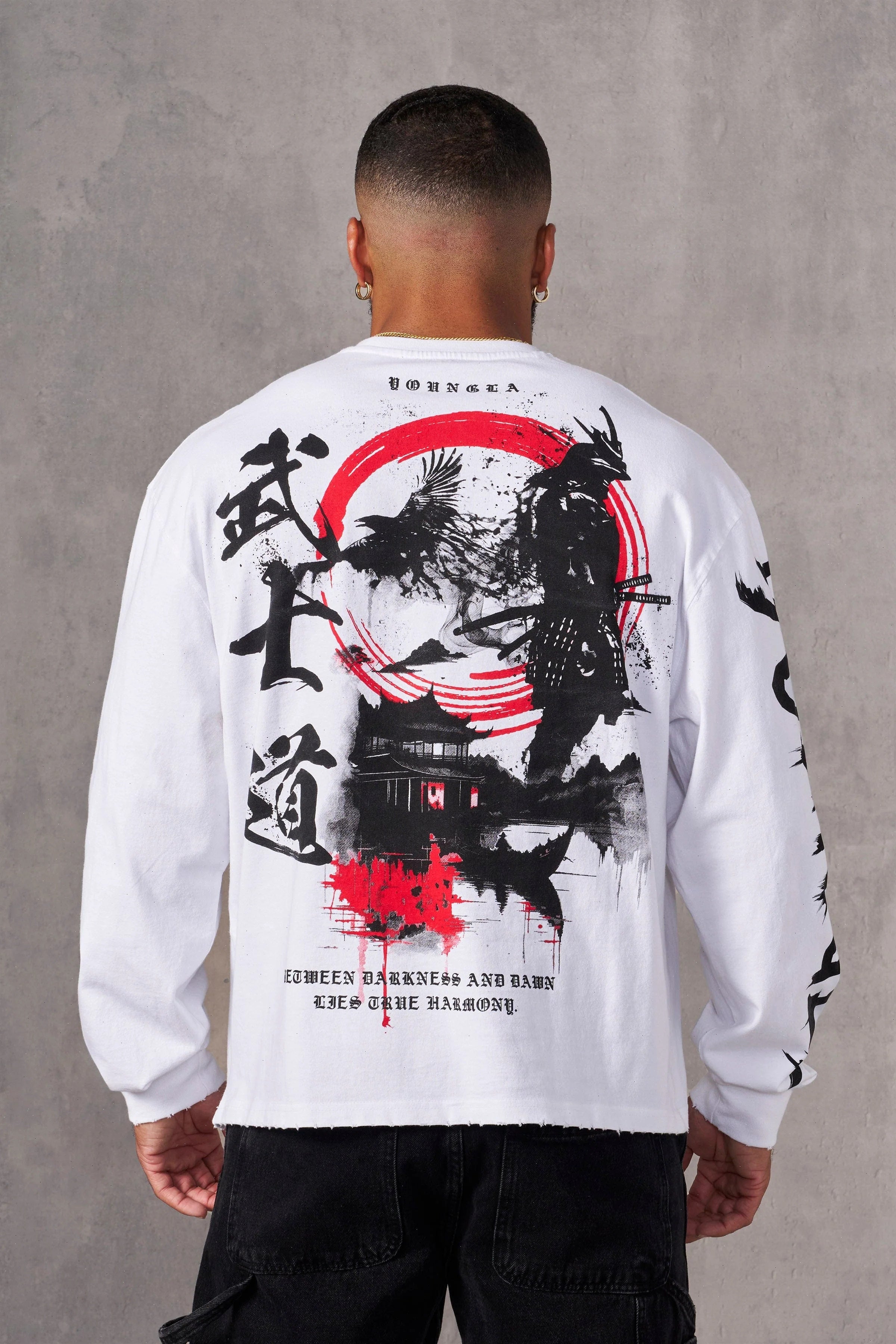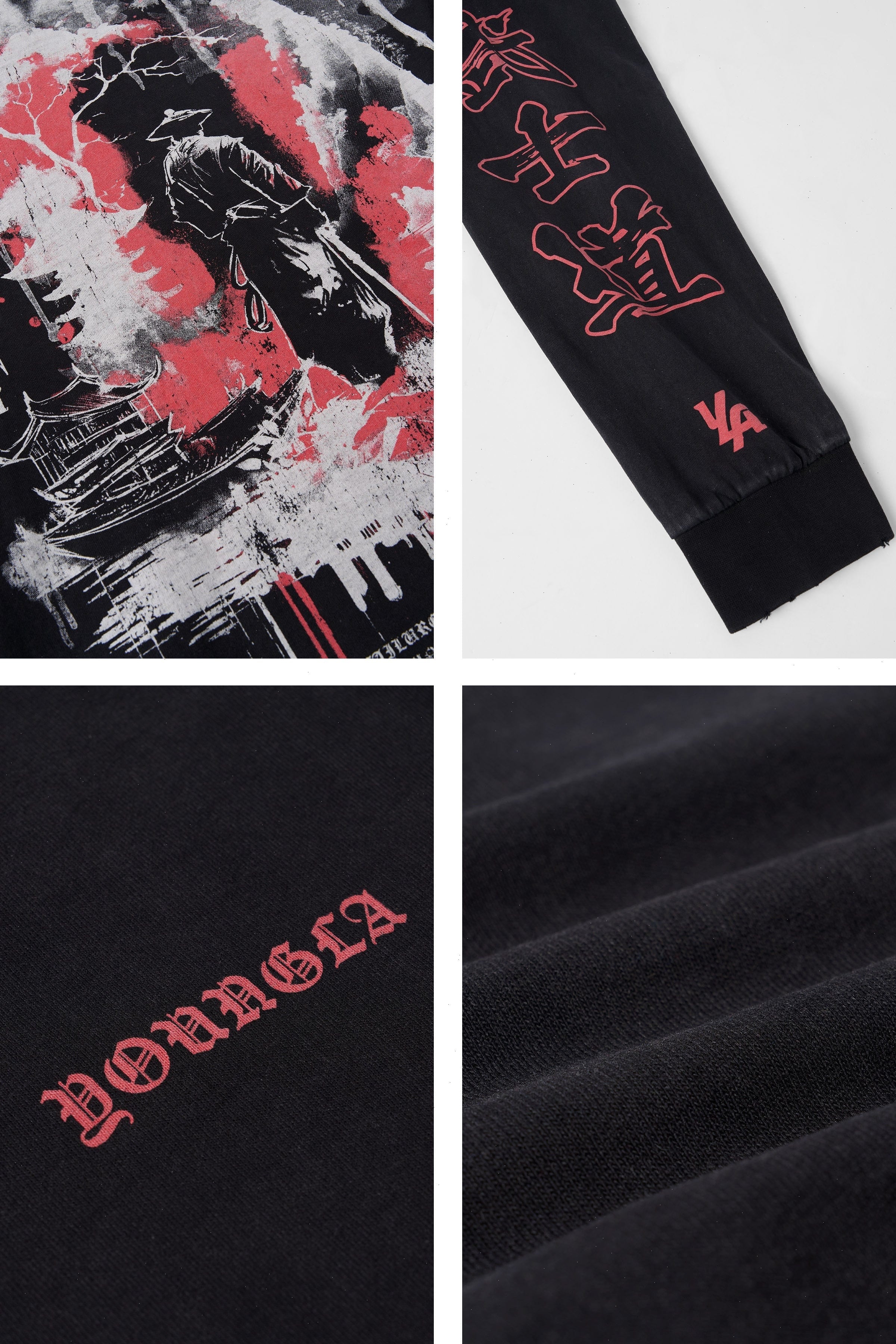 DESIGN: Elevate your look with this loose-fit long sleeve featuring striking Japanese warrior graphics on the back. Designed to make a statement, this piece combines bold style with comfort. Perfect for those who appreciate artistry and edge in their wardrobe.