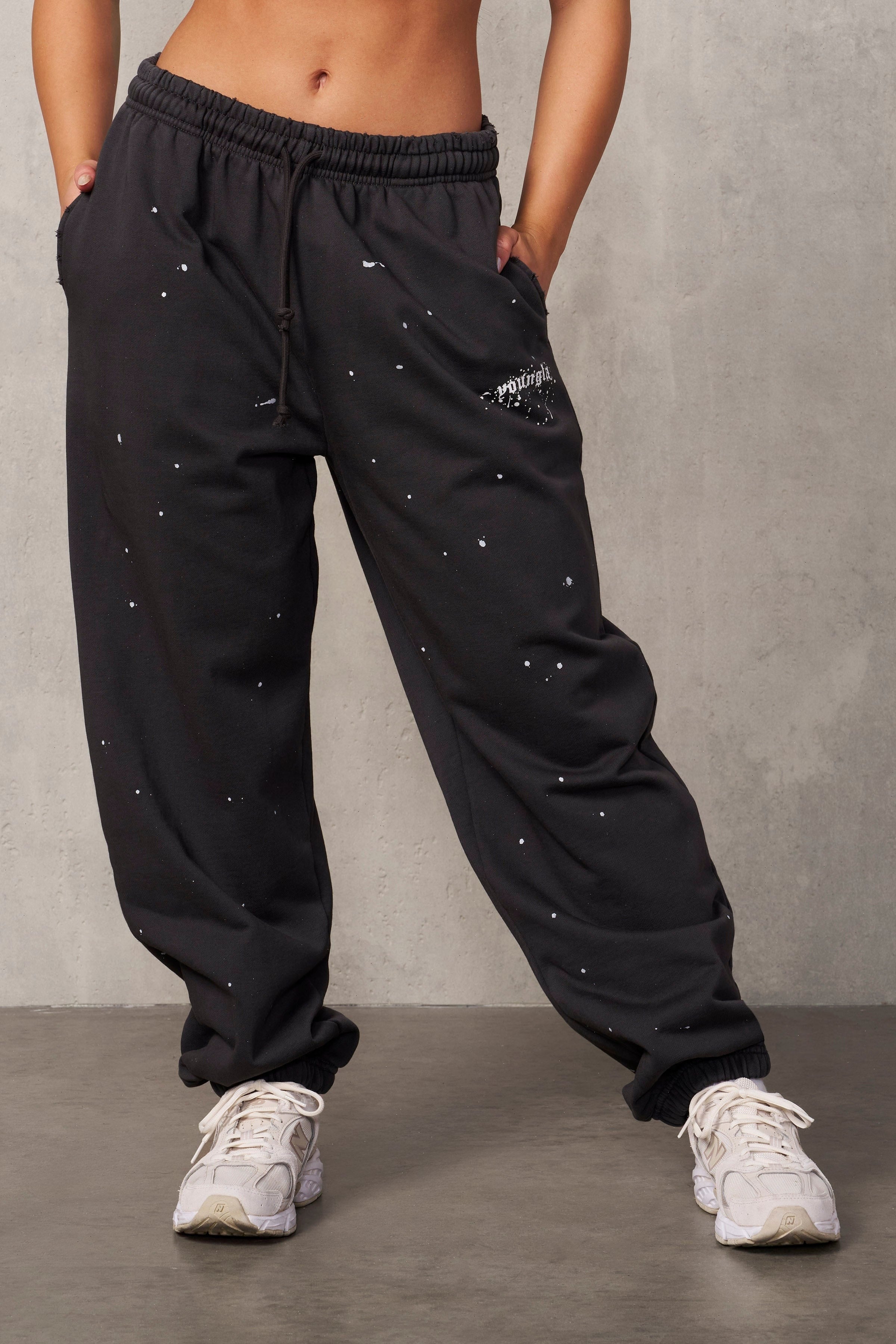 DESIGN: The "Ravage Joggers" are oversized pants featuring distress around the pockets, and paint splatter for a bold, distressed look. With a relaxed fit and edgy design, they're perfect for a rebellious, street-style statement.