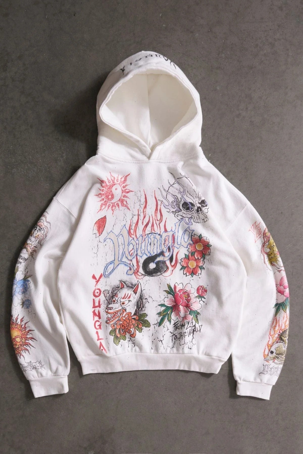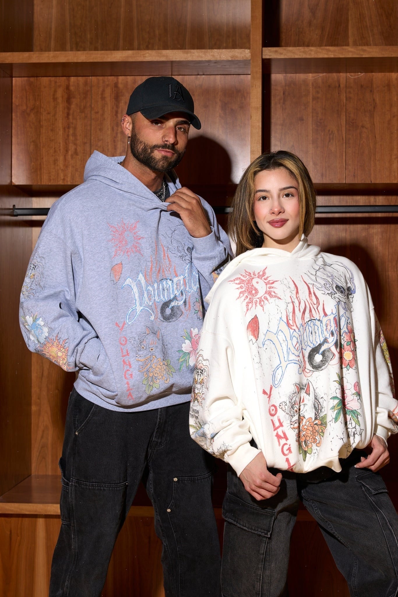DESIGN: Art you can wear. Scribble Hoodie blends streetwear vibes with hand-drawn tattoo-style graphics—flames, florals, and bold illustrations that turn heads without trying too hard. Made with soft fabric and a relaxed, oversized fit for that perfectly slouchy feel. Dropped shoulders and a brushed interior keep it soft, cozy, and made for everyday expression. Comes in three fire color-ways to suit every mood.