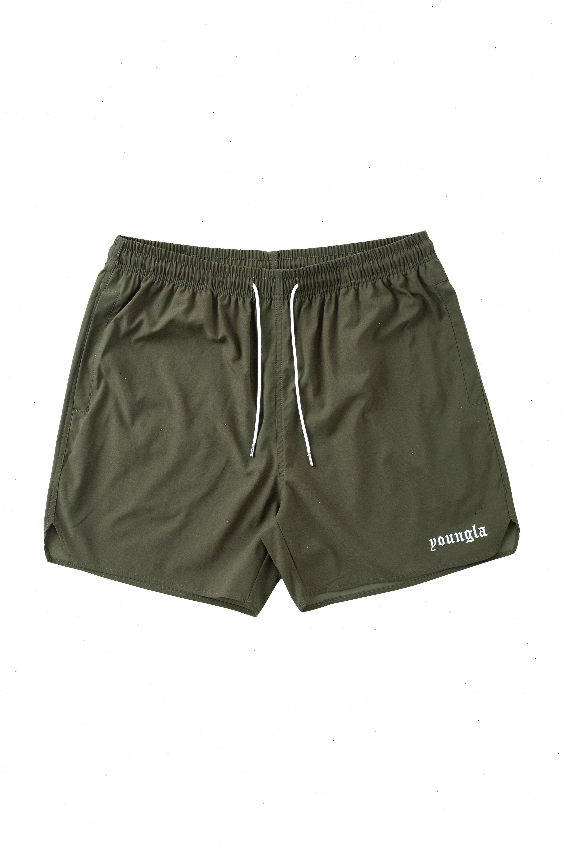 DESIGN: The finest shorts are designed to be comfortable, durable, and stylish, all at the same time. The fabric is carefully selected for the high-quality handfeel. Features include an elastic band with round drawcords, a back pocket, V slit on the sides, and YoungLA logo embroidered on the hem.