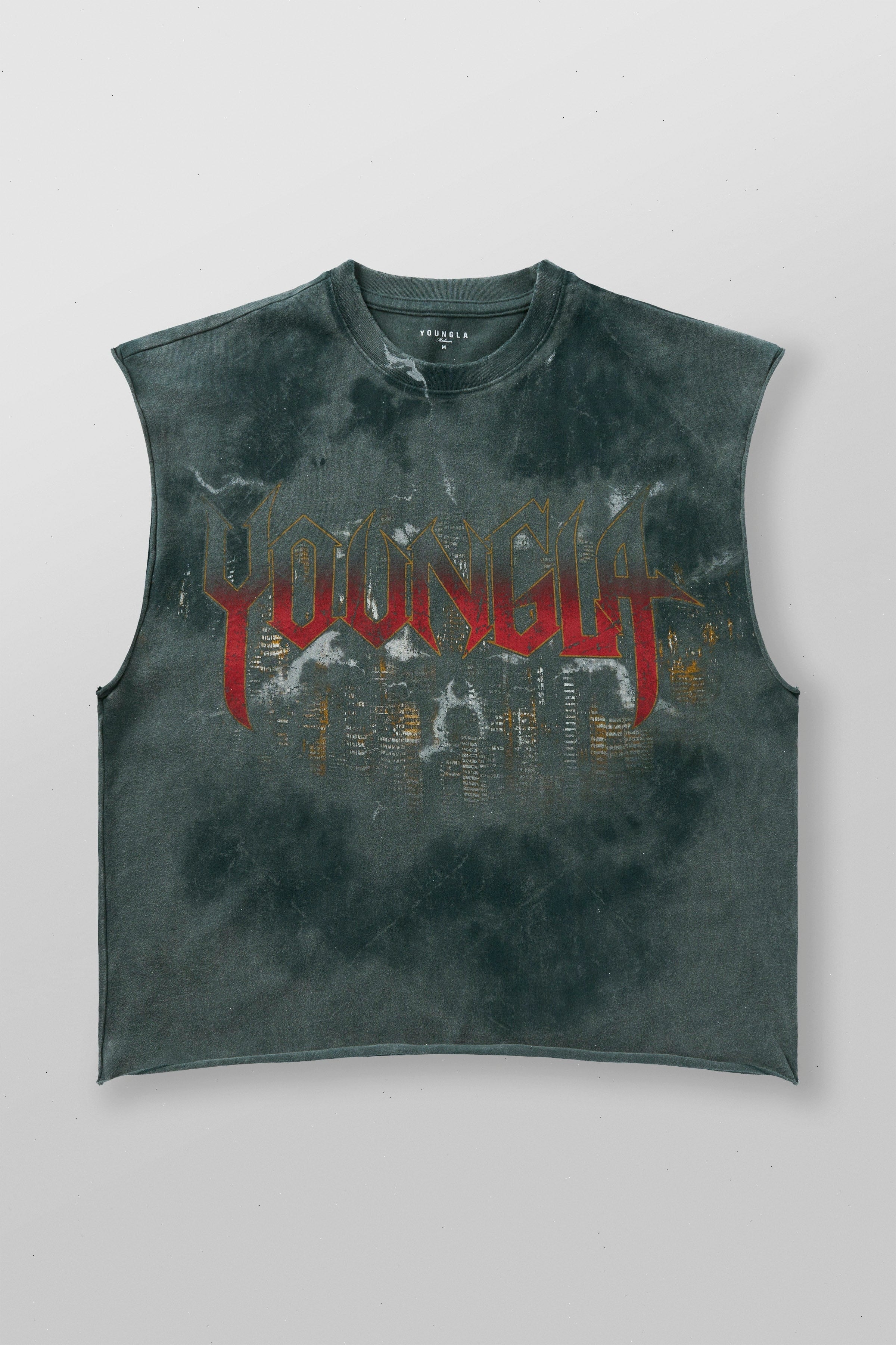DESIGN: Step up your style with the Dark Night Tanks, combining a streetwear vibe with a luxurious touch. The garment is washed for a vintage color, complemented by a dark skyline art print on the front. Perfect for making a statement with a high-end edge in your everyday look.