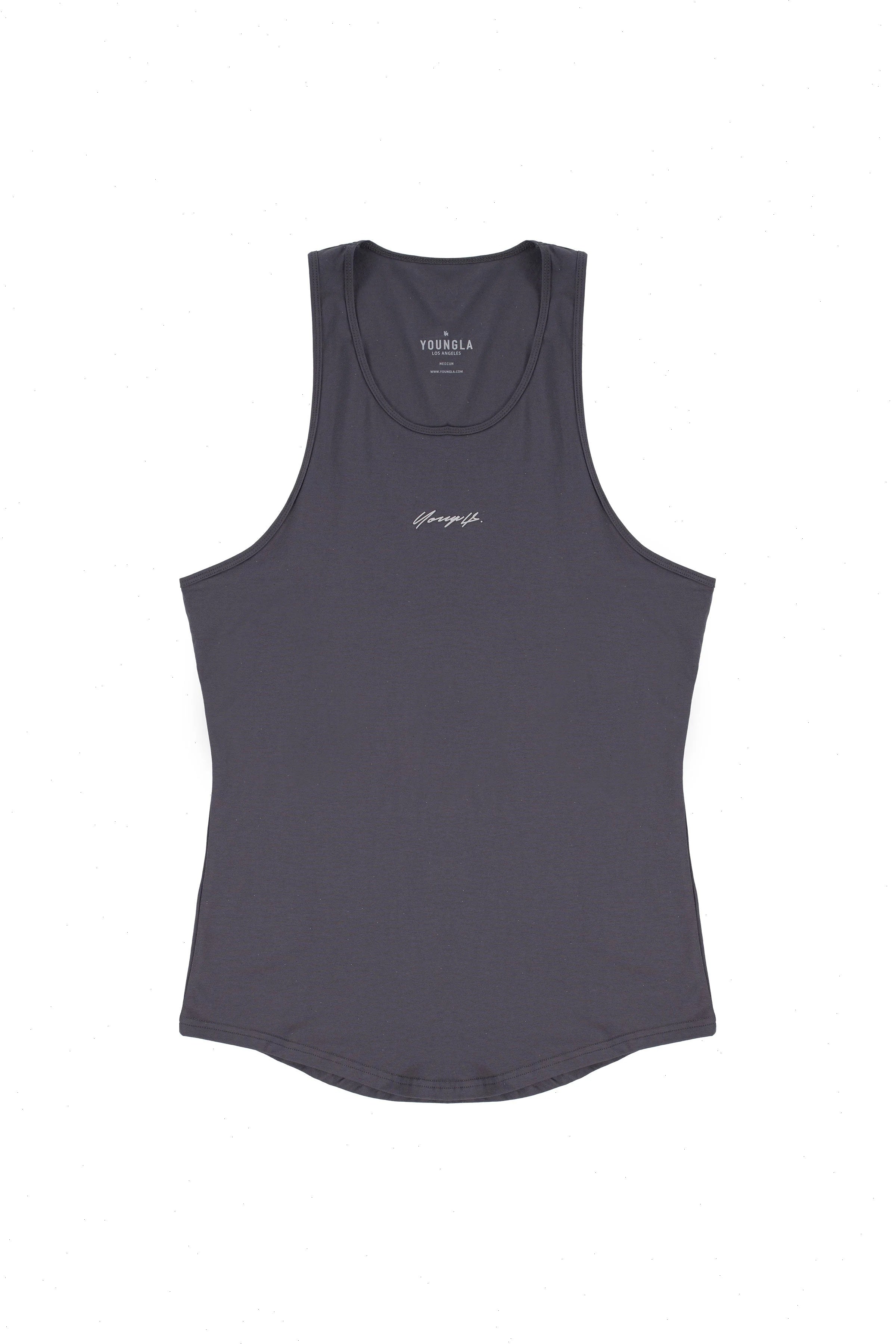 DESIGN: A tank that reflects your gains in the gym. The signature tanks are designed to give you more coverage than a stringer but less than a tank. The back is a racerback cut perfect to display the upper back and deltoids. The fabric composition makes this tank super soft and stretchy at the same time.