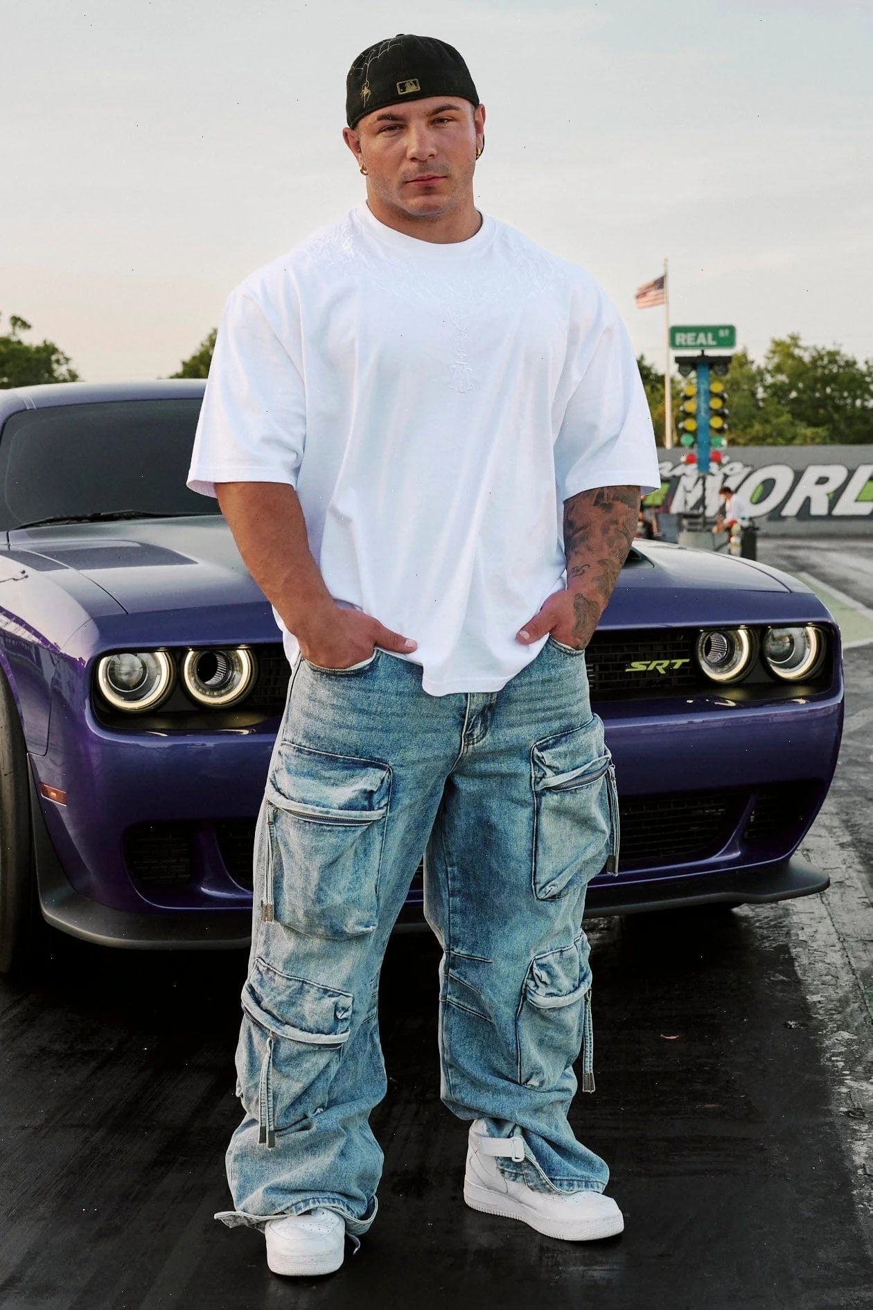 DESIGN: A heavyweight essential with edge. The Dark Wave Tee features a relaxed fit and tonal gothic embroidery that drapes across the chest like a sinister necklace. Finished in a deep wash for a worn-in feel, this piece blends minimalism with metal energy.