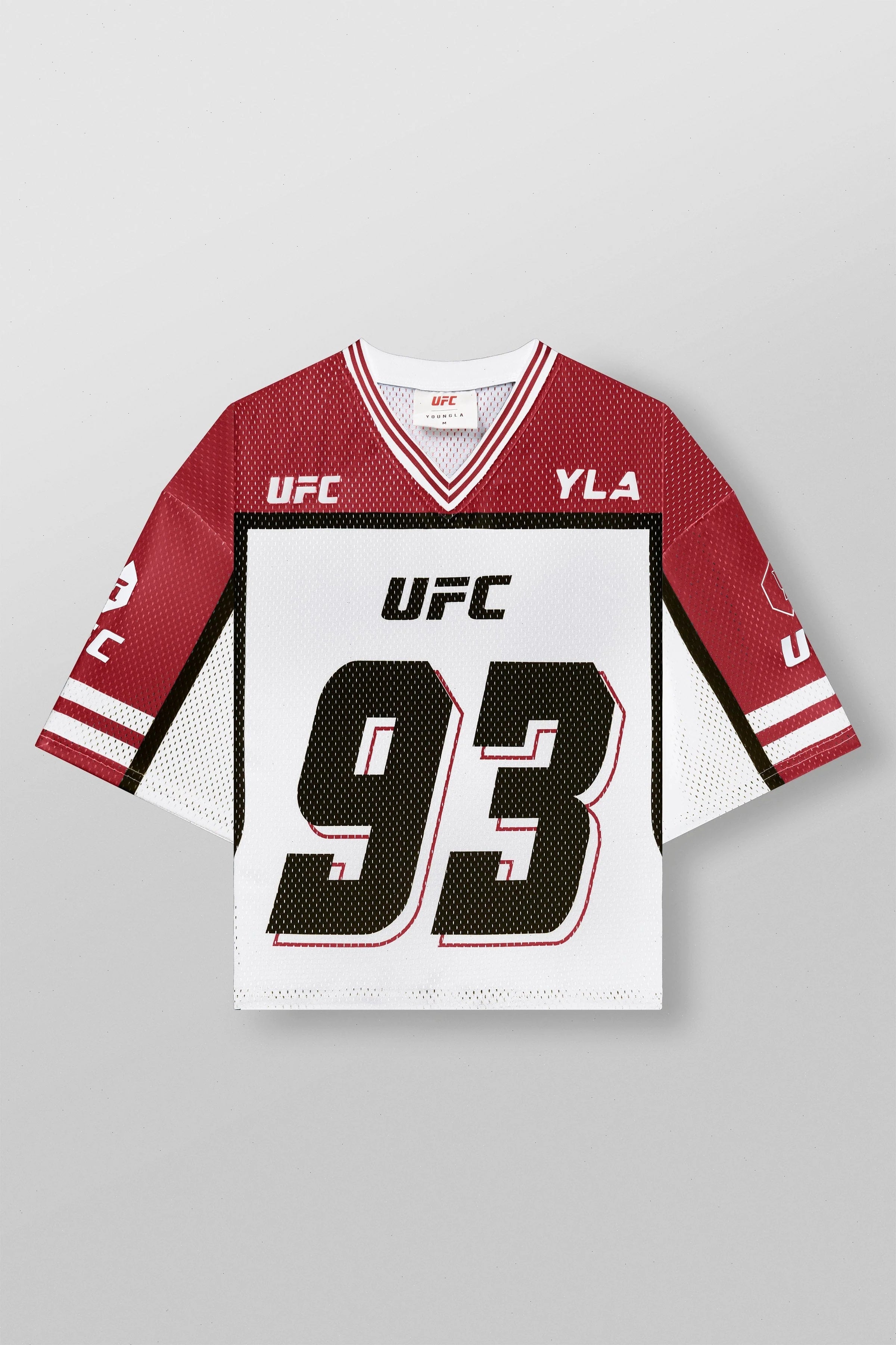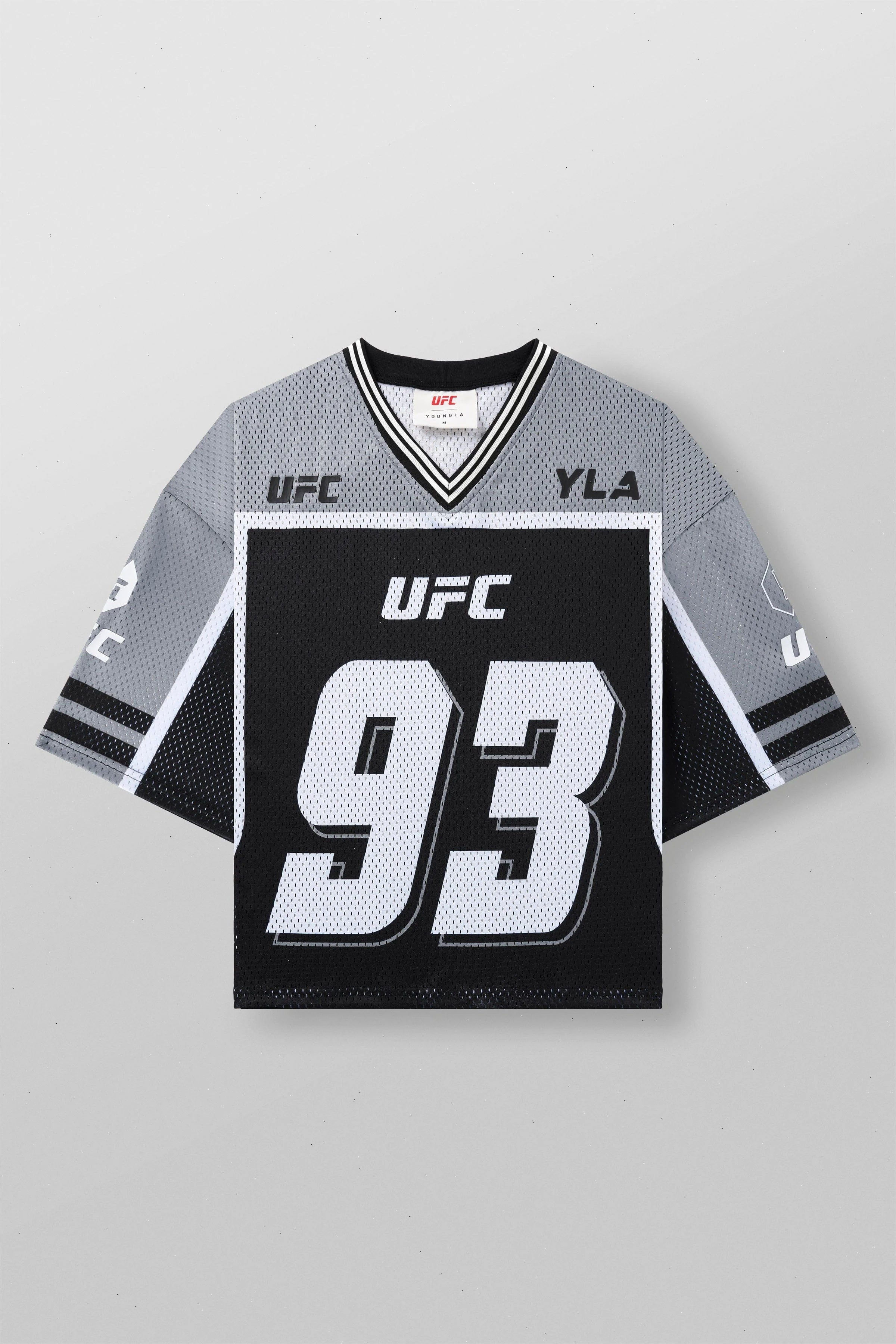 DESIGN: Get ready to stand out with the UFC x YoungLA mesh football jersey. Designed with a bold, athletic look, this jersey features a lightweight, breathable mesh fabric that’s perfect for training or casual wear. With UFC and YoungLA logos, along with a UFC EST year print, this jersey delivers a sport-inspired style that represents the fighting spirit.