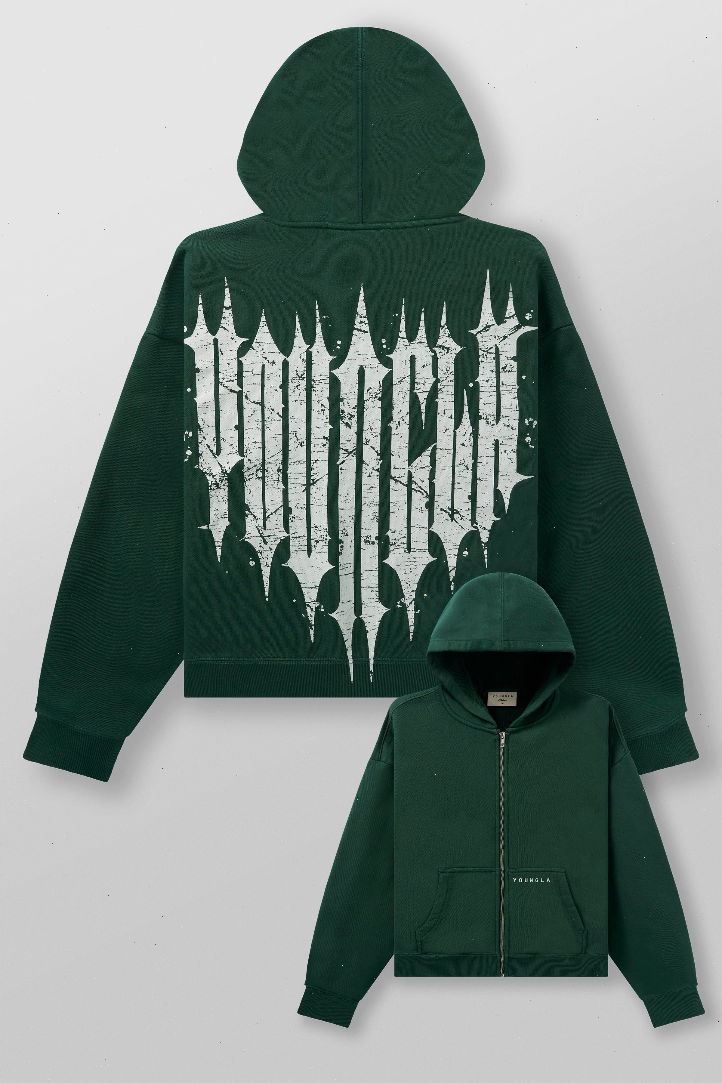 DESIGN: Revenge Zip-Up Hoodie, a perfect blend of bold design and modern style. Featuring our iconic Revenge logo printed on the back, this hoodie is sure to make a statement. With a sleek, boxy fit and a short length, it offers a contemporary look that pairs effortlessly with any outfit.