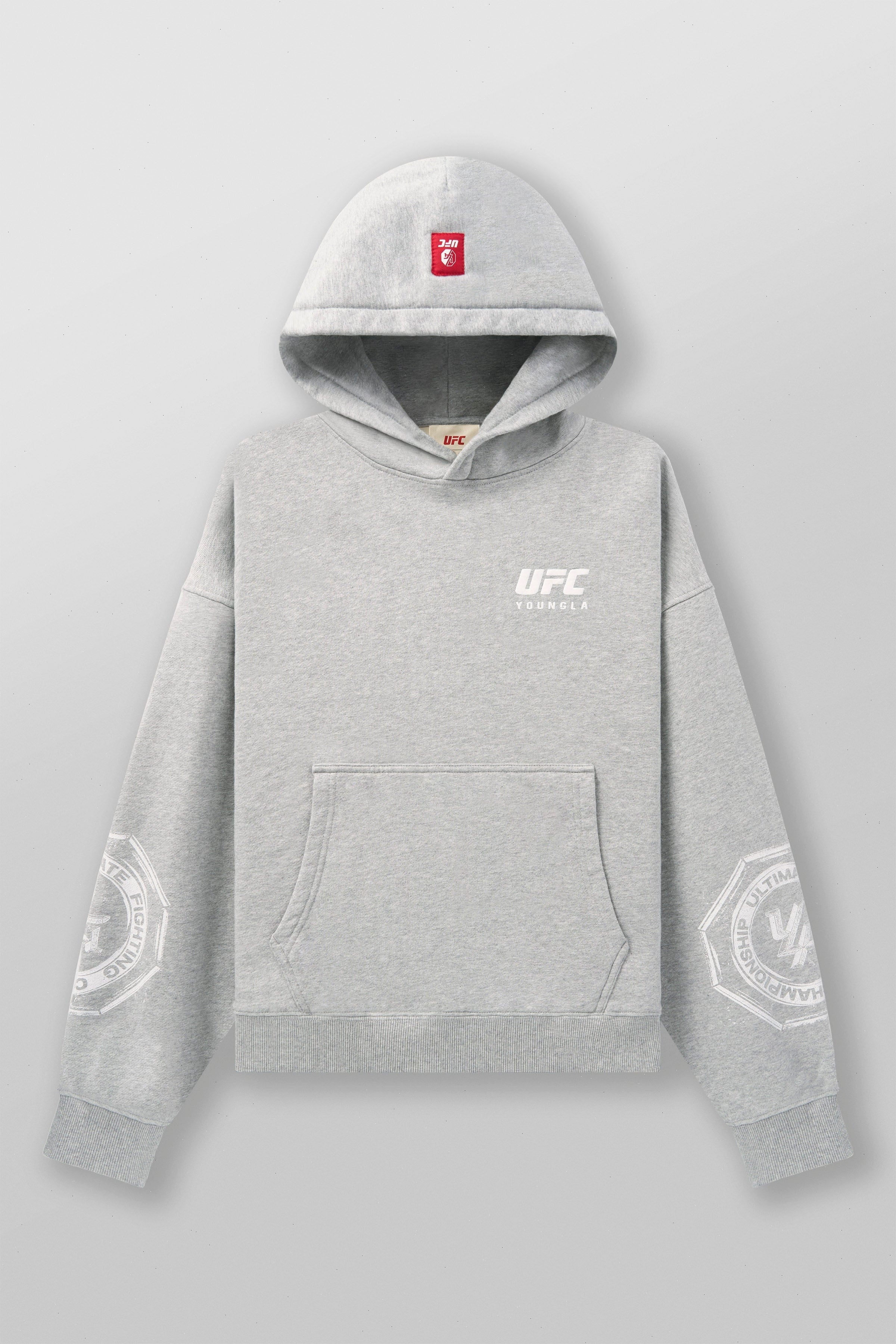 DESIGN: Stay comfortable and laid-back in the YoungLA x UFC oversized hoodie. Made from 100% cotton and garment washed for extra softness, this hoodie offers a relaxed fit that's perfect for everyday wear. With distressed UFC and YoungLA logos on the sleeves, it adds a cool, casual touch to your look. Whether you're hanging out or hitting the gym, this hoodie has you covered.