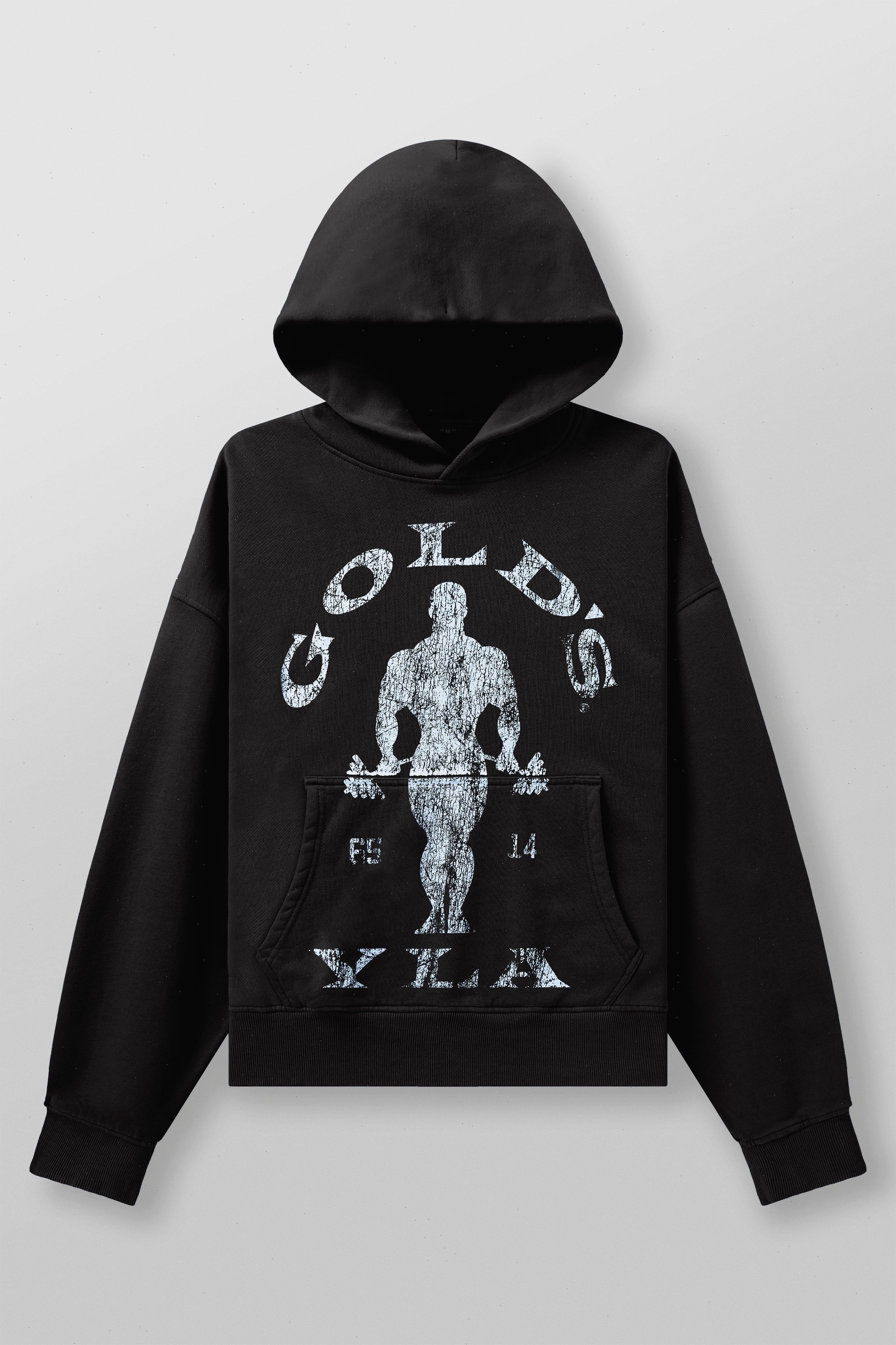 DESIGN: This Gold's Gym x YoungLA hoodie merges iconic design with laid-back style. The oversized fit and washed fabric give it a vintage, lived-in feel, while the distressed graphic keeps things classic. Comfortable, stylish, and versatile, this hoodie is perfect for both active and casual days.