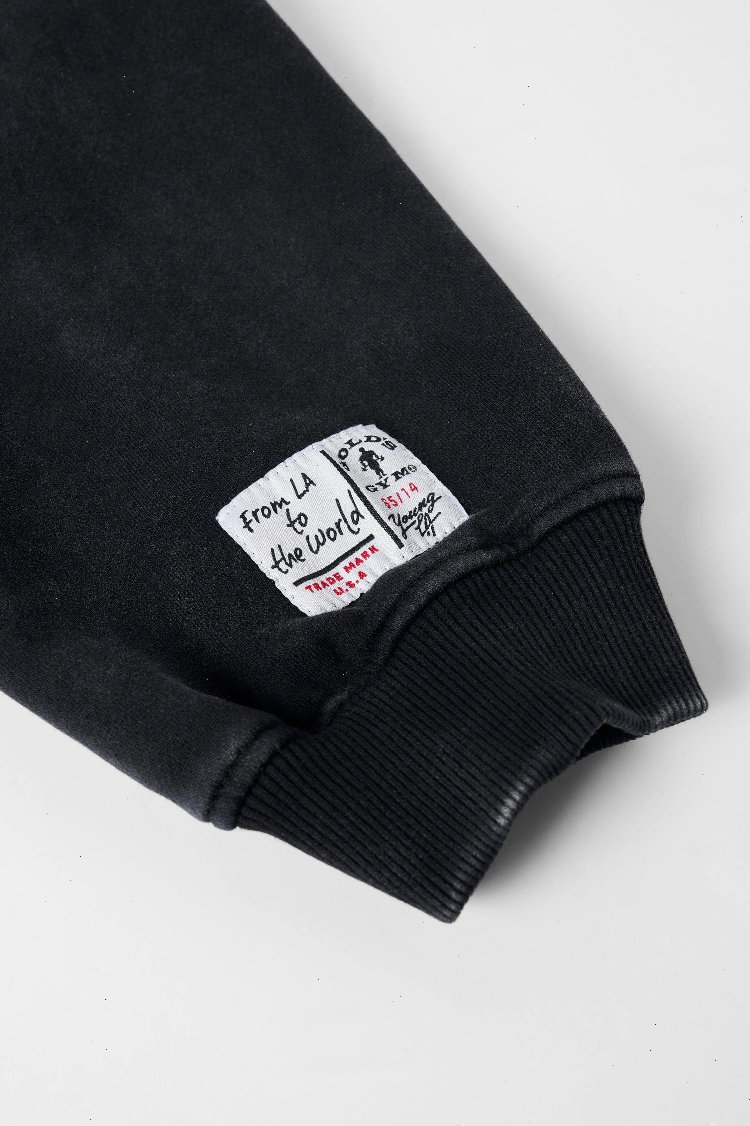 DESIGN: This zip-up hoodie from the Gold’s Gym x YoungLA collaboration combines classic gym style with modern streetwear. Featuring an oversized fit and a washed fabric for a vintage vibe, it’s designed for maximum comfort and a laid-back look. The back showcases a bold, distressed Gold's Gym x YLA graphic, adding a statement piece to your wardrobe.