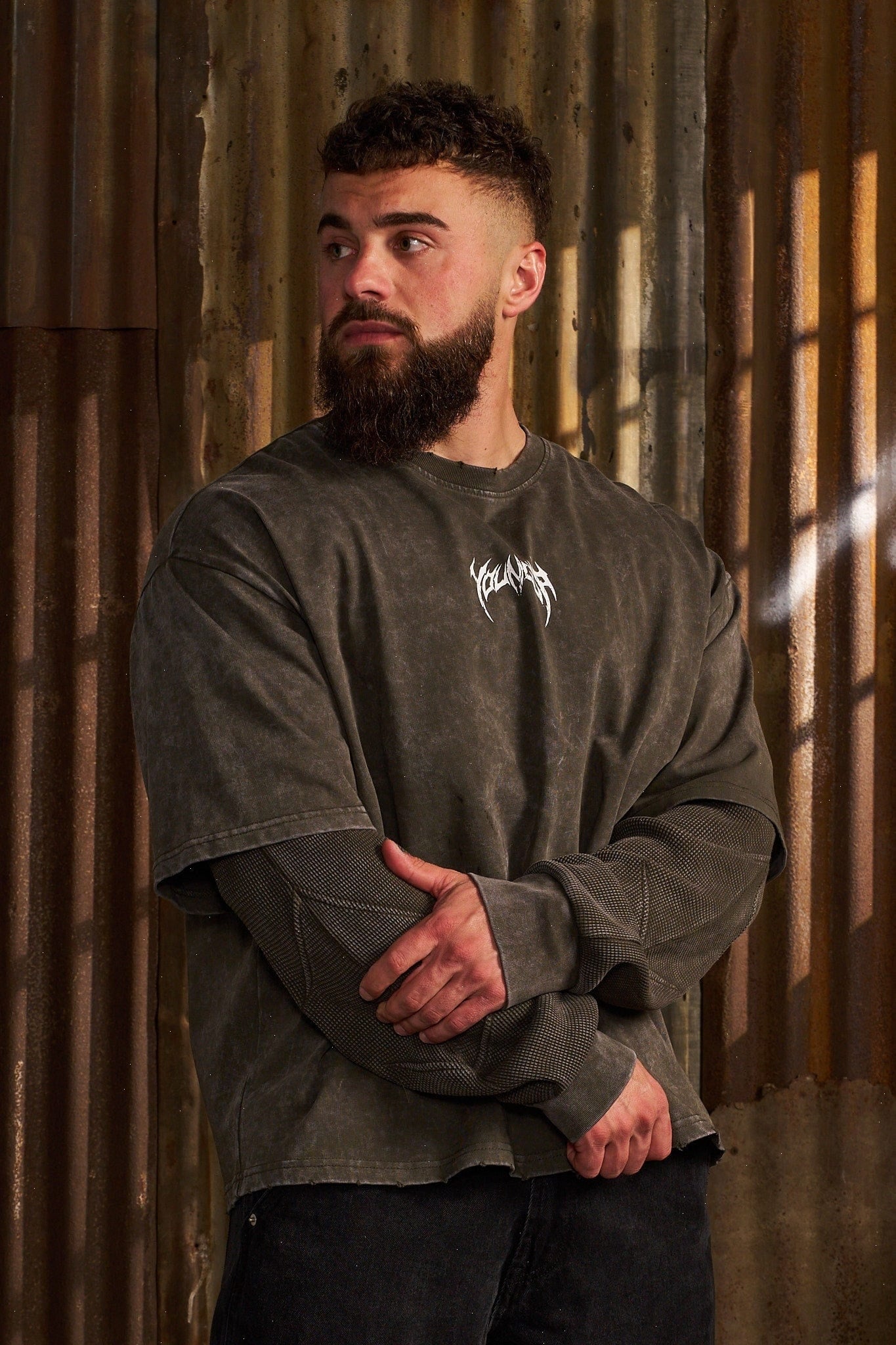 DESIGN: Introducing the Shadow Twofer Long Sleeve—a unique fusion of style and texture. Crafted from soft cotton, it combines a vintage acid-washed body with cozy thermal under-sleeves for added warmth. Featuring distressed cuts on the collar and hem, this twofer delivers a bold, worn-in look that stands out.