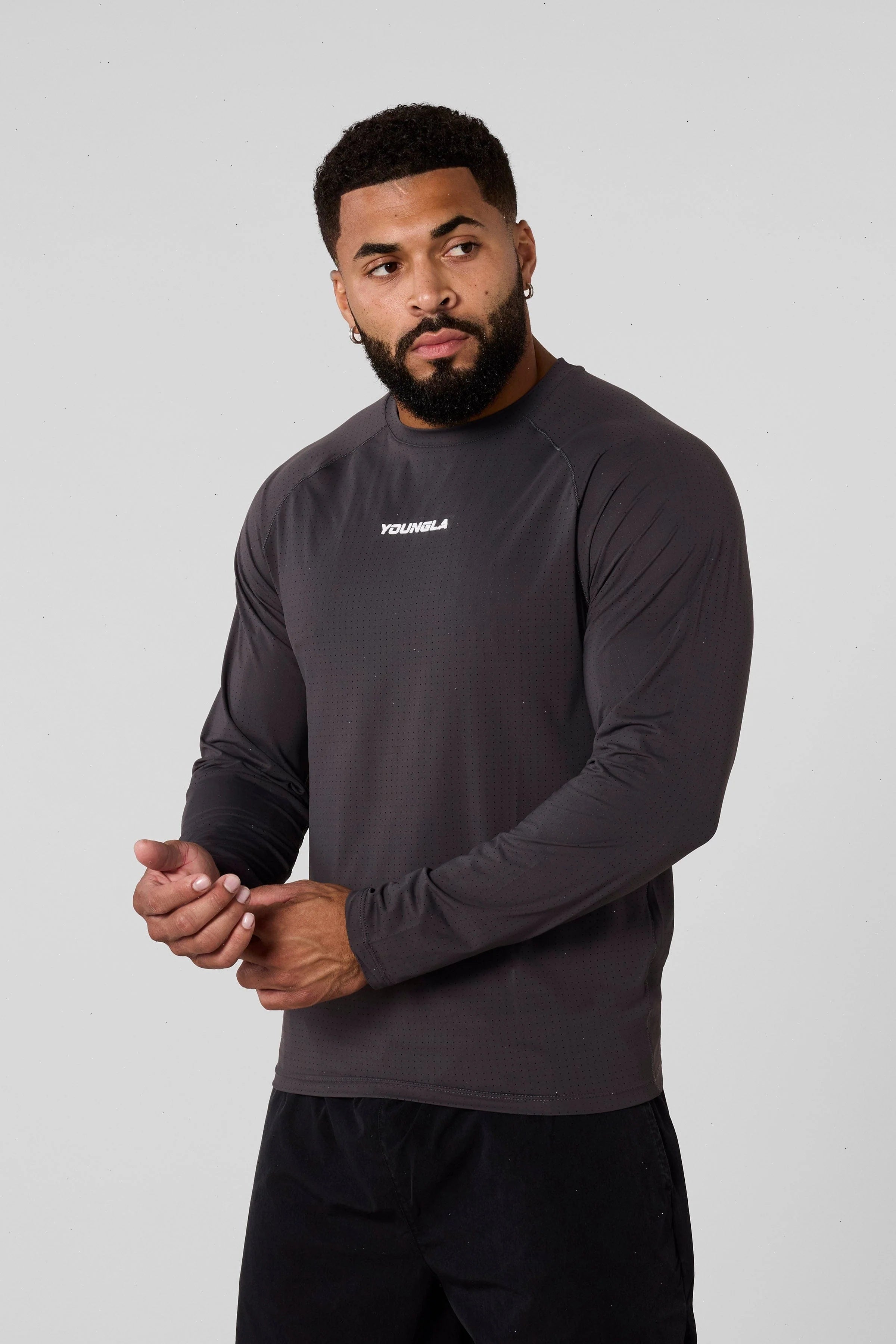 DESIGN: Engineered for performance and all-day comfort, this fitted long sleeve features a streamlined silhouette that moves with you. Lightweight and breathable, the aeromesh construction keeps you cool during workouts while maintaining a sleek, modern look. Minimal detailing makes it versatile for layering or wearing solo, on or off the gym floor. Built for training and everyday style, it’s a reliable go-to piece.