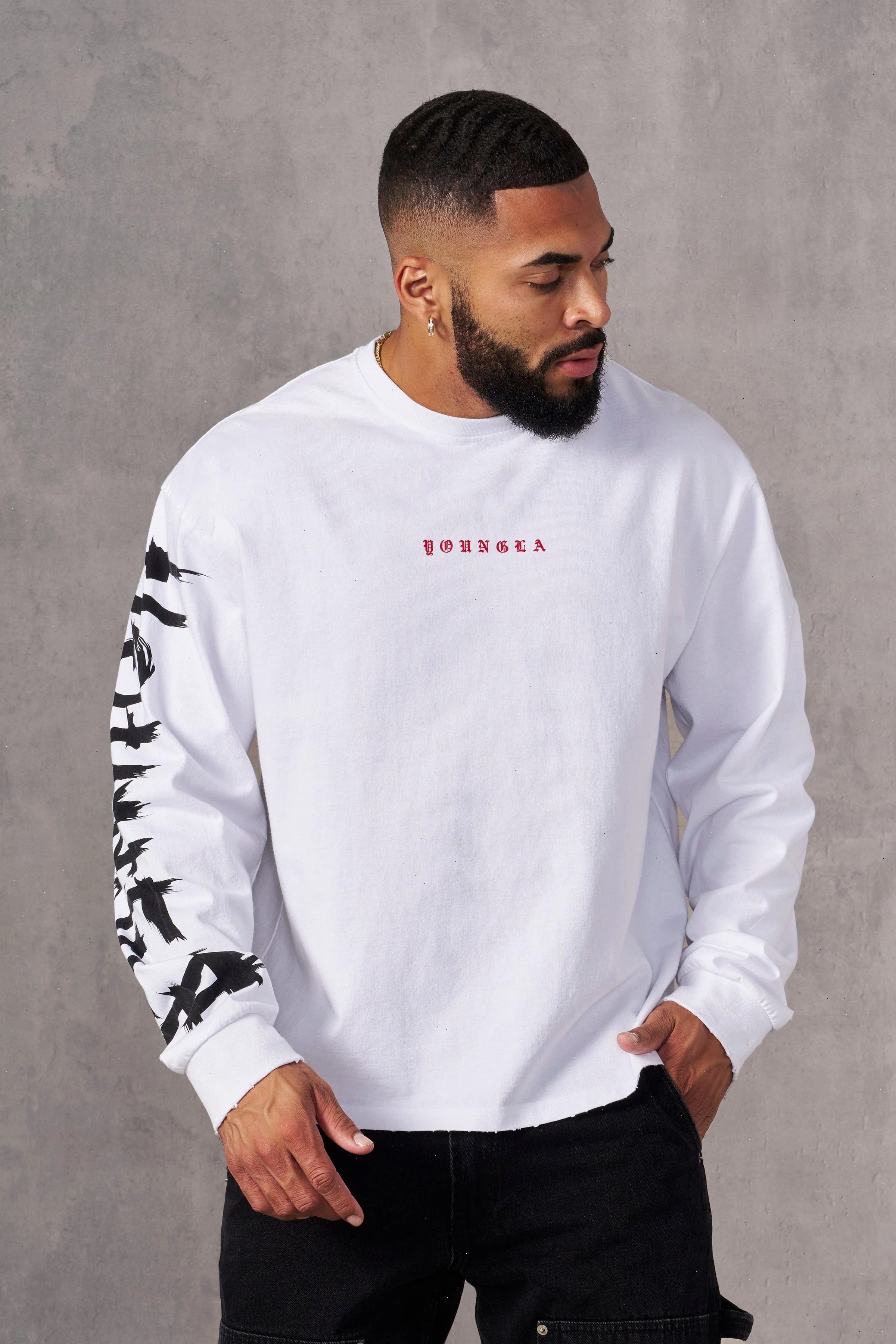 DESIGN: Elevate your look with this loose-fit long sleeve featuring striking Japanese warrior graphics on the back. Designed to make a statement, this piece combines bold style with comfort. Perfect for those who appreciate artistry and edge in their wardrobe.