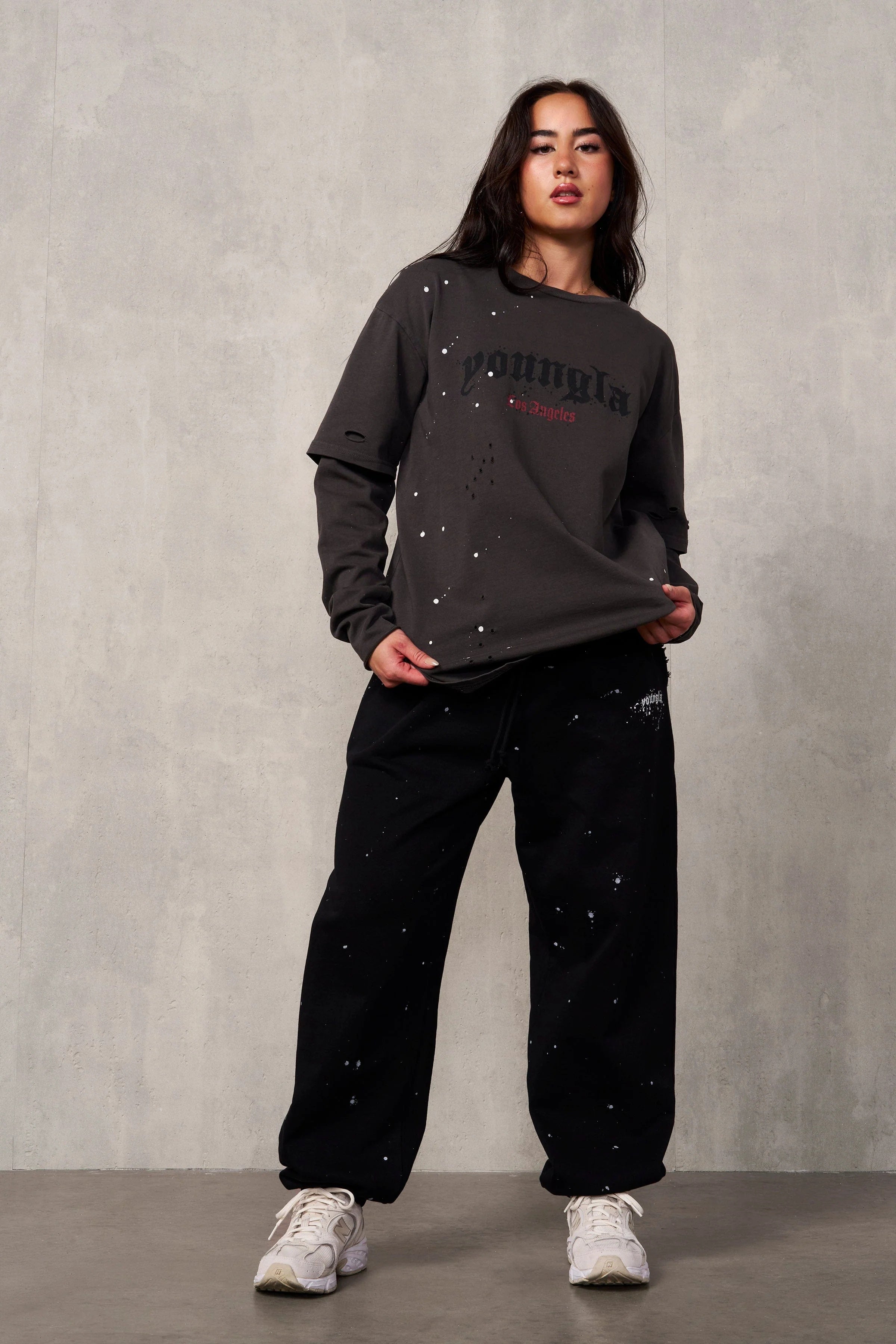 DESIGN: The "Ravage Joggers" are oversized pants featuring distress around the pockets, and paint splatter for a bold, distressed look. With a relaxed fit and edgy design, they're perfect for a rebellious, street-style statement.