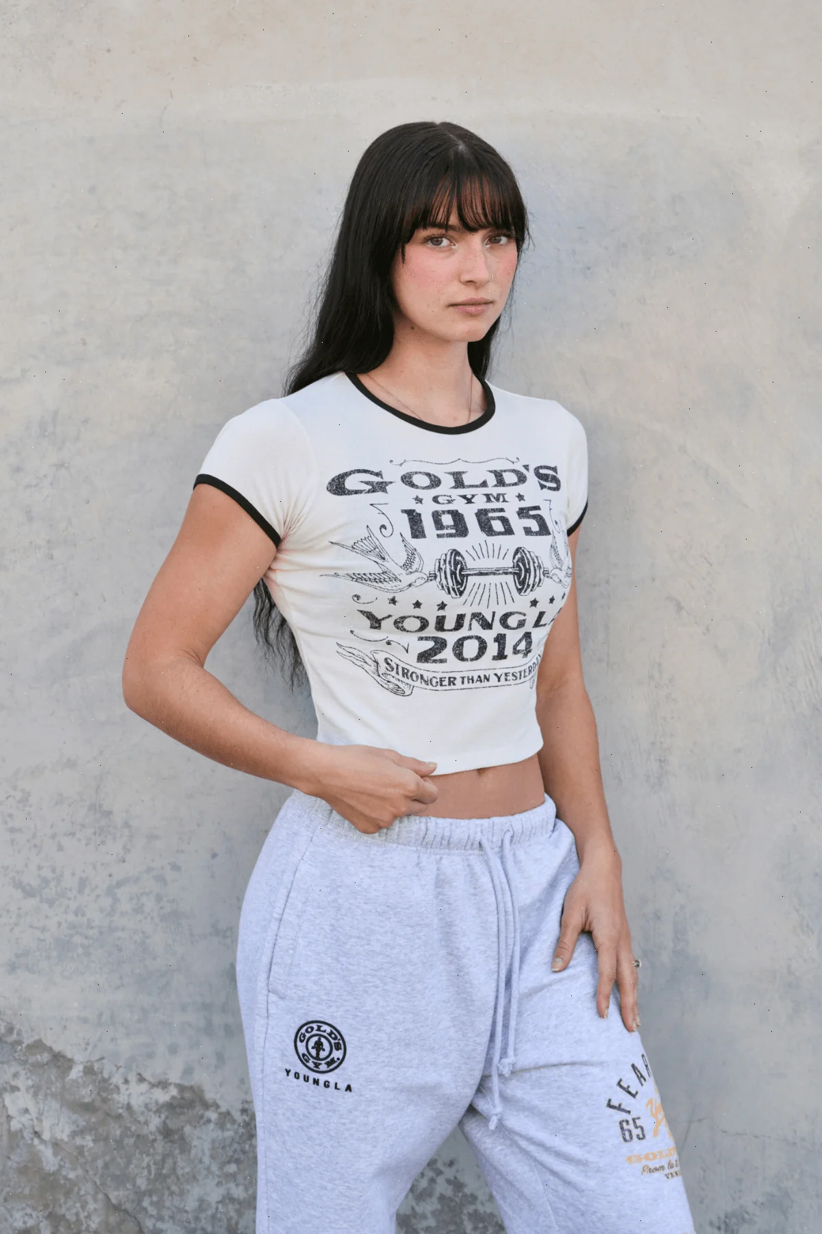 DESIGN: Embrace comfort with a touch of style in the Golds Poster Baby Tee. This soft, lightweight tee is made from premium cotton that feels gentle against the skin while offering a flattering, fitted silhouette. Perfect for everyday wear, whether you're at the gym, running errands, or just relaxing, this baby tee is designed to keep you cool and confident, with a chic, casual vibe.