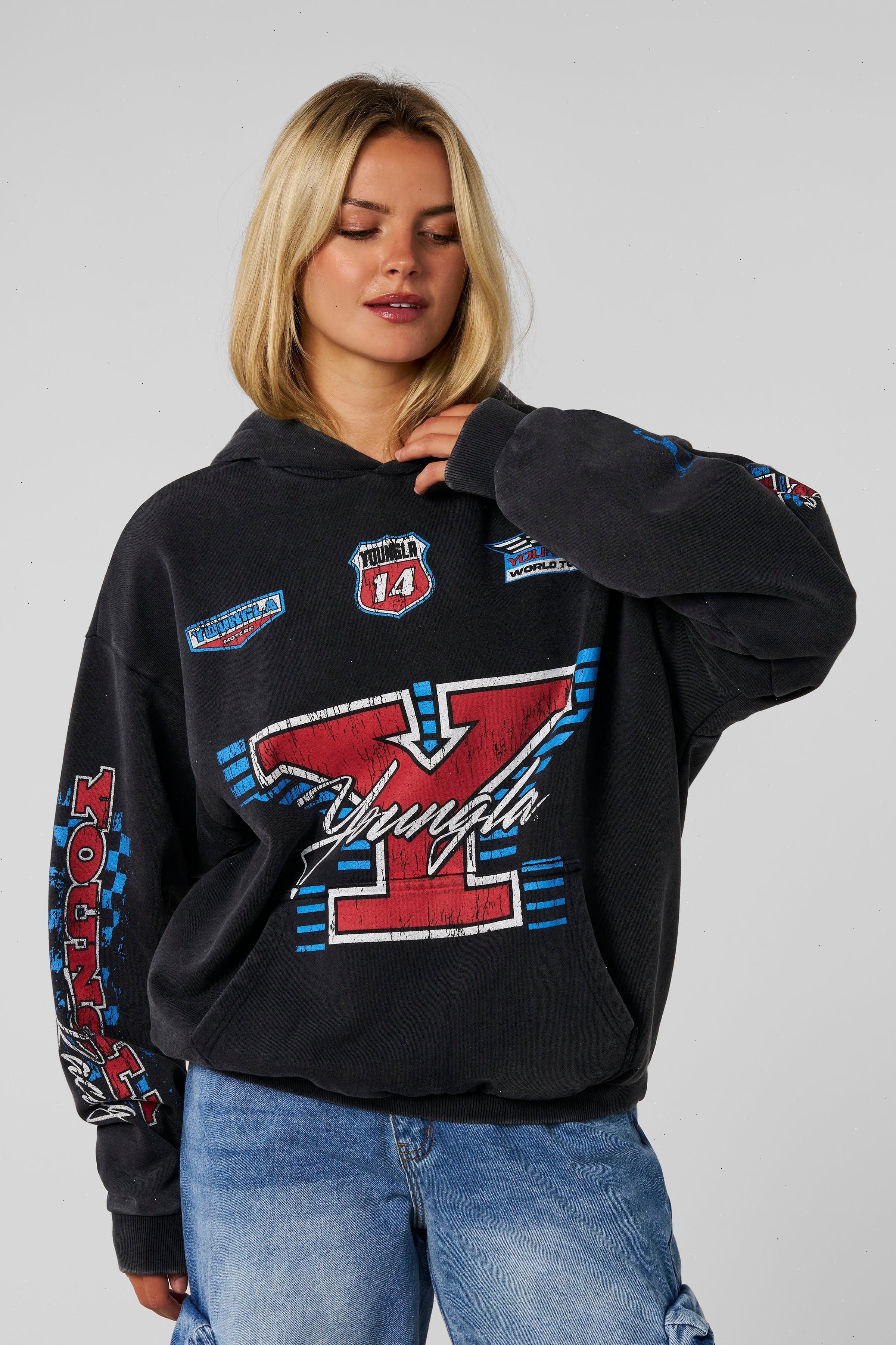 DESIGN: Make a statement in the Racing Hoodie — where comfort meets bold street style. Crafted from soft terry fabric with a washed finish for that lived-in feel, this oversized hoodie brings serious edge with racing-inspired bold graphics. Perfect for throwing on post-gym, pre-plans, or anytime you want to turn casual into standout.