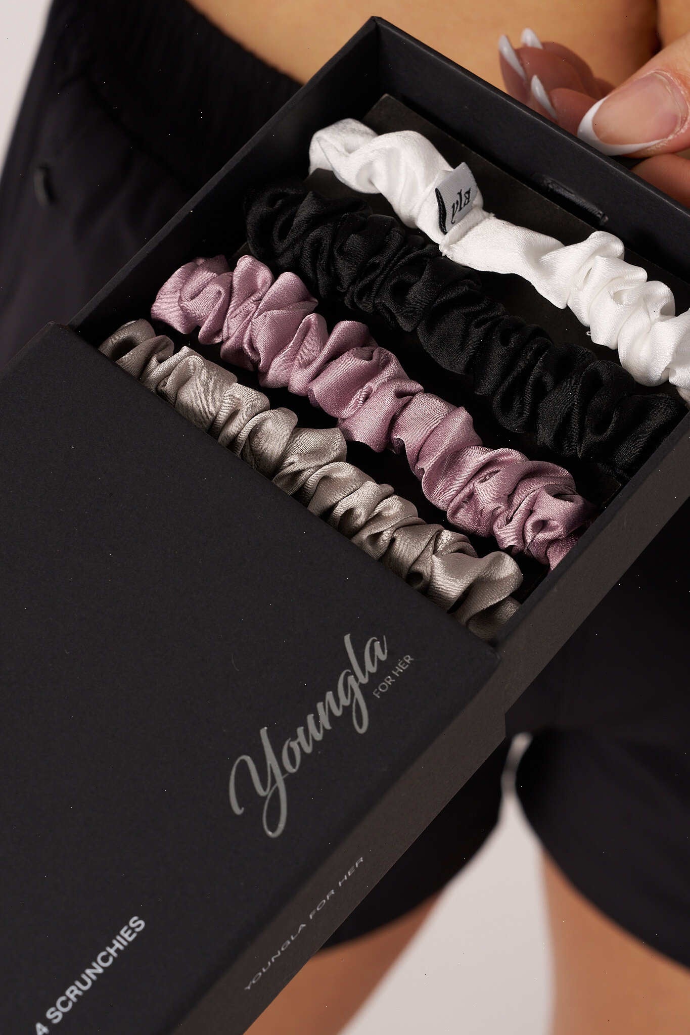 DESIGN: Luxurious satin scrunchies that are soft, stretchy, and designed to prevent tangles and hair breakage. Perfect for wearing on your wrist or tying up your hair, these scrunchies come in elegant packaging, adding a touch of sophistication to your everyday style. Comes in a pack of 4 neutral colors.